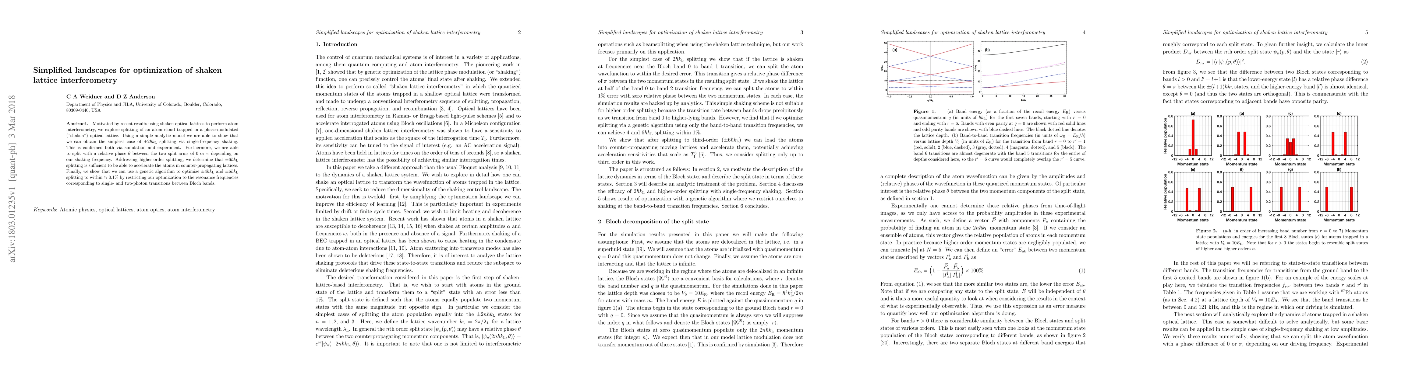 Researchers developed a method to optimize shaken lattice interferometry using simple analytic models and simulations, allowing for precise control over atom splitting and acceleration. They demonstrated the ability to split atoms with high accuracy and even adjust the relative phase between two split arms.