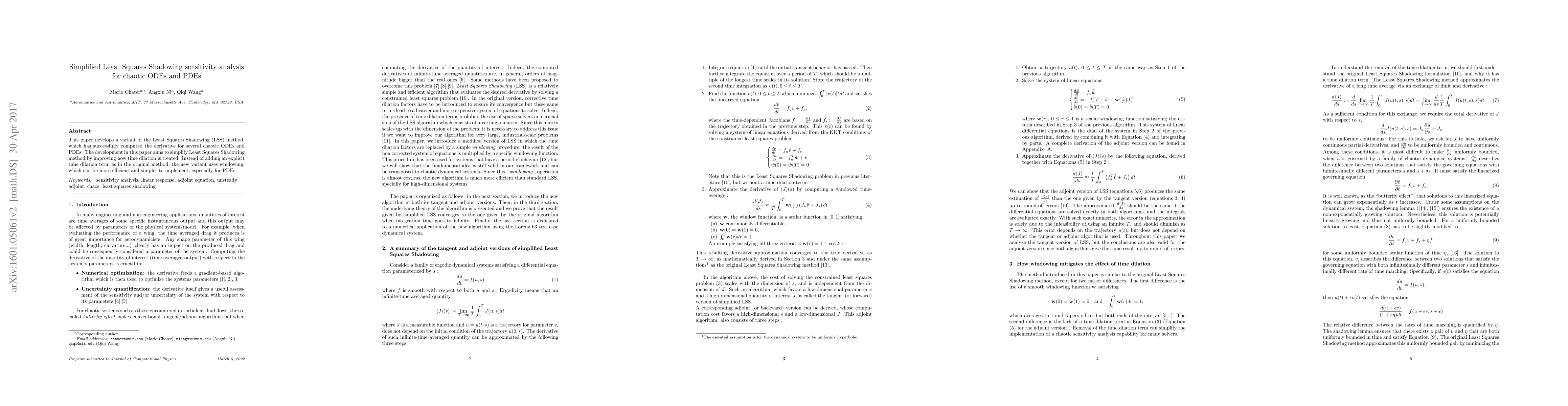 This paper introduces a simplified variant of the Least Squares Shadowing method for computing derivatives in chaotic ODEs and PDEs, improving time dilation treatment through windowing instead of explicit terms, making it easier to implement, particularly for PDEs.