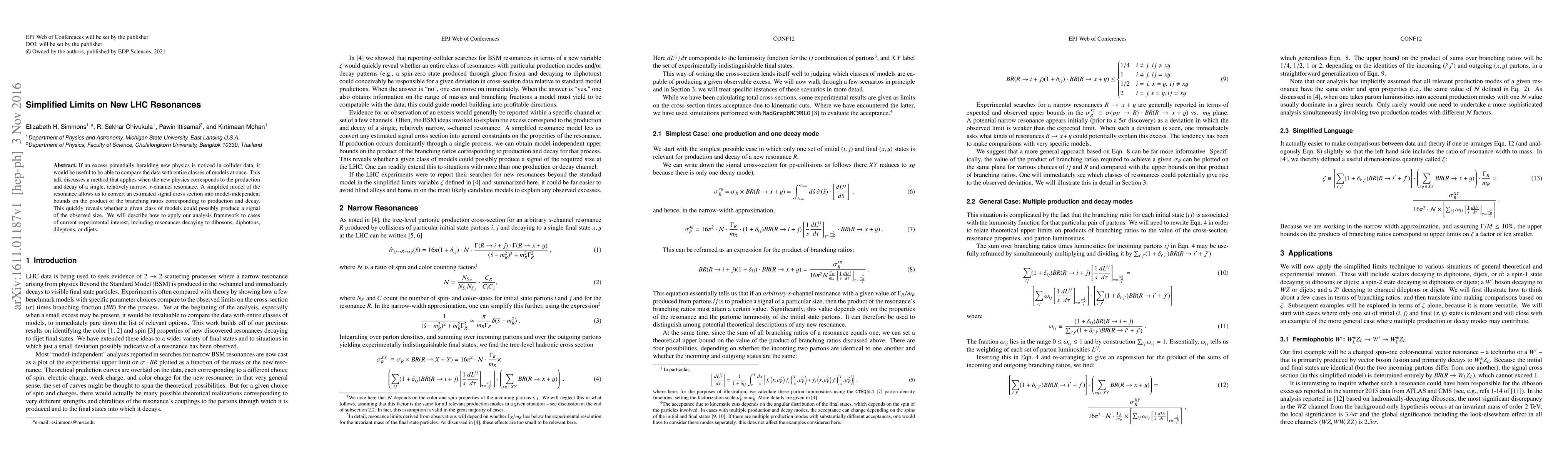 If an excess potentially heralding new physics is noticed in collider data, it would be useful to be able to compare the data with entire classes of models at once. This talk discusses a method that applies when the new physics corresponds to the production and decay of a single, relatively narrow, s-channel resonance. A simplifed model of the resonance allows us to convert an estimated signal cross section into model-independent bounds on the product of the branching ratios corresponding to production and decay. This quickly reveals whether a given class of models could possibly produce a signal of the observed size. We will describe how to apply our analysis framework to cases of current experimental interest, including resonances decaying to dibosons, diphotons, dileptons, or dijets.