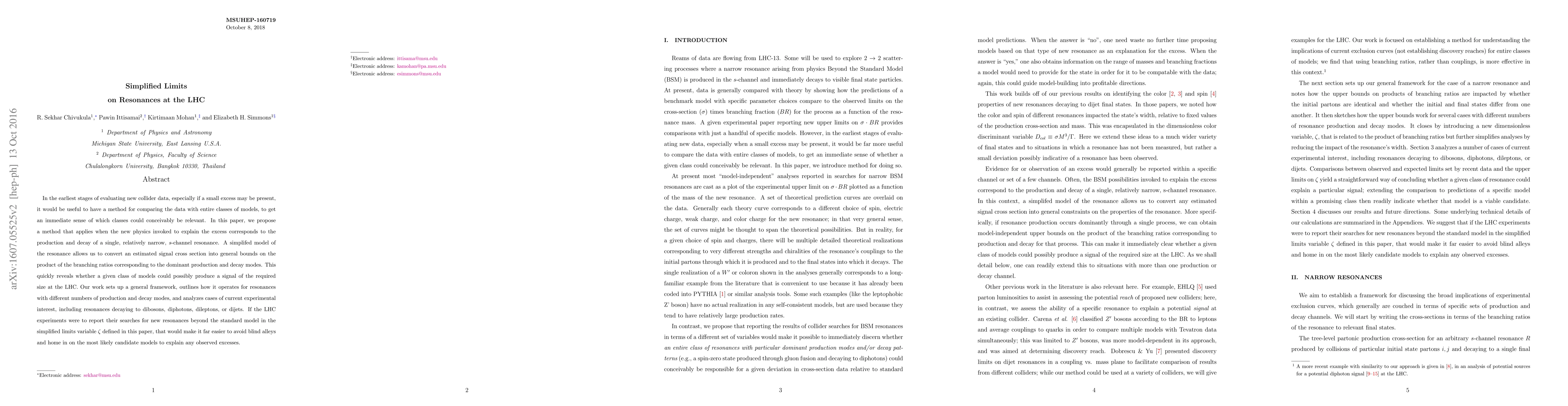 In the earliest stages of evaluating new collider data, especially if a small excess may be present, it would be useful to have a method for comparing the data with entire classes of models, to get an immediate sense of which classes could conceivably be relevant. In this paper, we propose a method that applies when the new physics invoked to explain the excess corresponds to the production and decay of a single, relatively narrow, $s$-channel resonance. A simplifed model of the resonance allows us to convert an estimated signal cross section into model-independent bounds on the product of the branching ratios corresponding to production and decay. This quickly reveals whether a given class of models could possibly produce a signal of the required size at the LHC. Our work sets up a general framework, outlines how it operates for resonances with different numbers of production and decay modes, and analyzes cases of current experimental interest, including resonances decaying to dibosons, diphotons, dileptons, or dijets. If the LHC experiments were to report their searches for new resonances beyond the standard model in the simplified limits variable $\zeta$ defined in this paper, that would make it far easier to avoid blind alleys and home in on the most likely candidate models to explain any observed excesses.