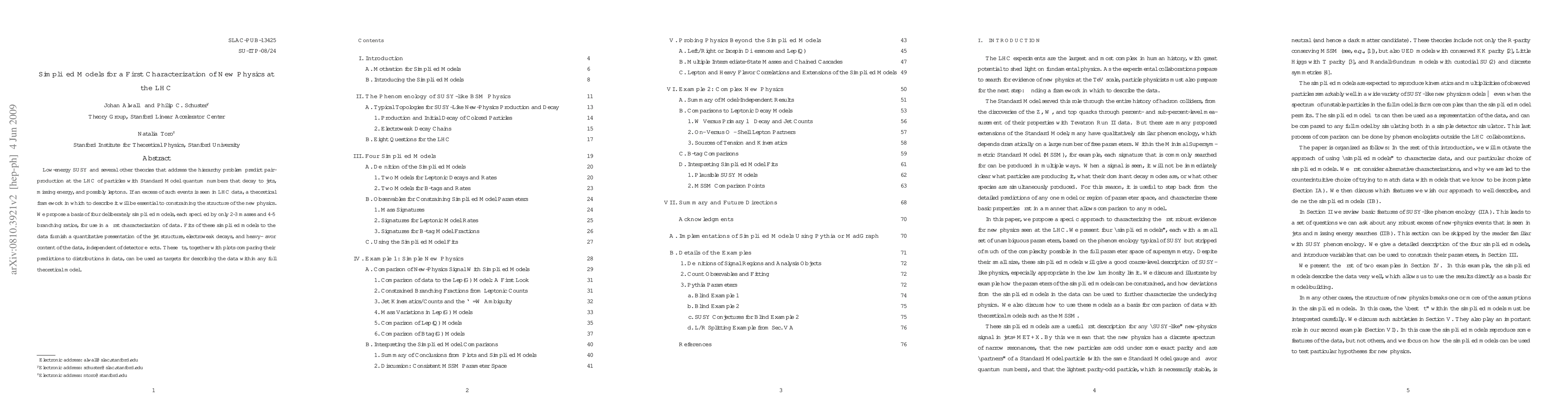 This paper proposes four simplified models to characterize potential new physics at the LHC, each with minimal parameters, to analyze data showing excess events predicted by low-energy SUSY and other theories. These models aim to provide a first quantitative characterization of the data's jet structure, decay patterns, and heavy-flavor content.