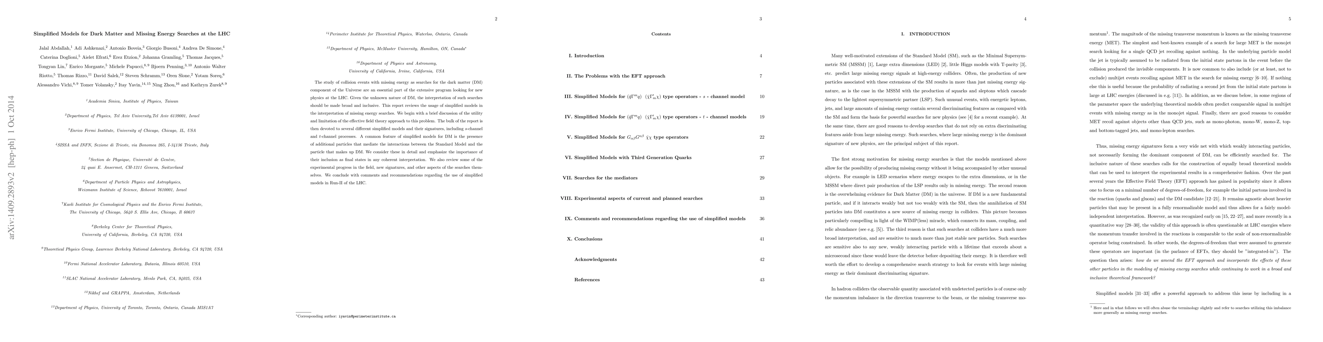 This paper reviews the use of simplified models to interpret missing energy events at the LHC, focusing on dark matter searches. It discusses the limitations of effective field theory and explores various simplified models, emphasizing the role of additional mediating particles in these interactions.