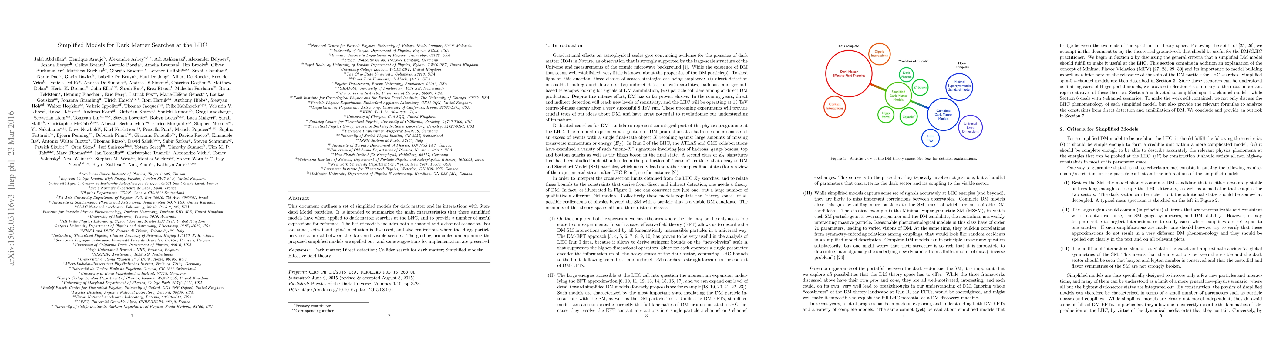 This paper presents simplified models for dark matter interactions at the LHC, focusing on both s-channel and t-channel scenarios, including spin-0 and spin-1 mediation, and Higgs-mediated portals, to aid in dark matter searches. It provides useful expressions and implementation suggestions for these models.