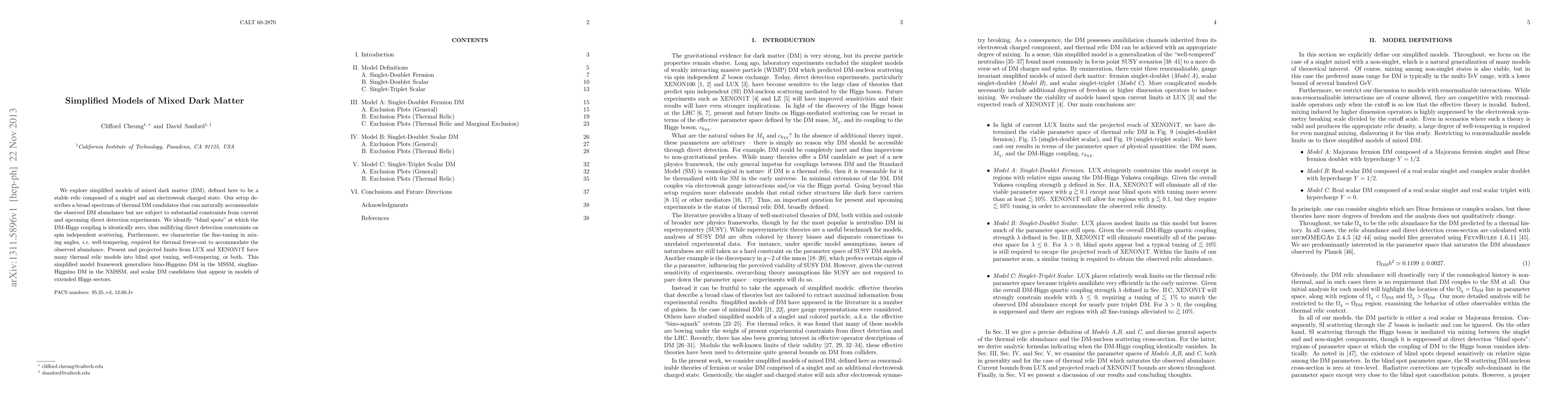 This paper investigates simplified models of mixed dark matter, focusing on scenarios where dark matter consists of a singlet and an electroweak-charged state. It identifies "blind spots" where the DM-Higgs coupling is zero, evading direct detection constraints, and examines the fine-tuning required for these models to fit observed dark matter abundances.