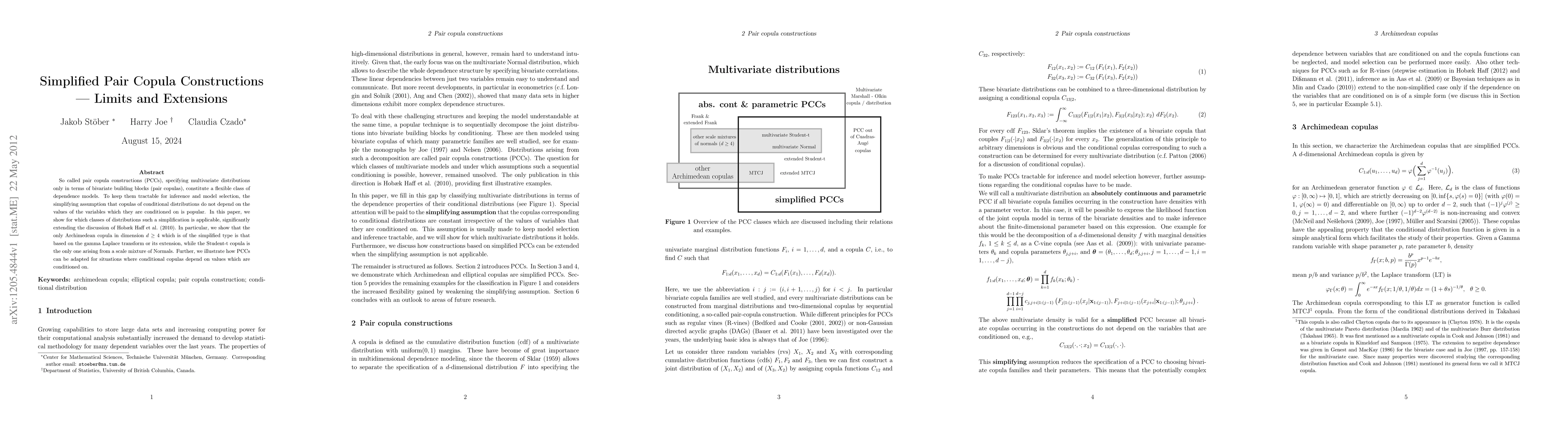 This paper explores the applicability of simplified pair copula constructions (PCCs) for various multivariate distributions, extending prior work by identifying specific Archimedean copulas suitable for the simplification. It also demonstrates adaptations for PCCs when conditional copulas depend on conditioned values.