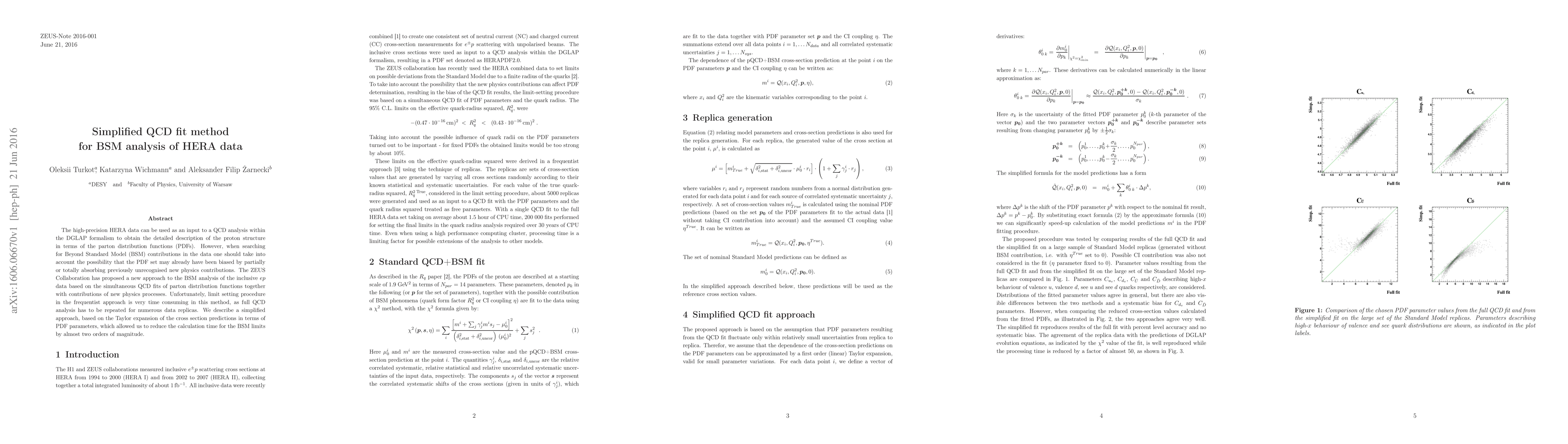 The ZEUS Collaboration proposes a simplified QCD fit method to analyze HERA data for Beyond Standard Model contributions, reducing calculation time by almost two orders of magnitude using a Taylor expansion of cross section predictions. This approach allows for more efficient limit setting in the frequentist approach.