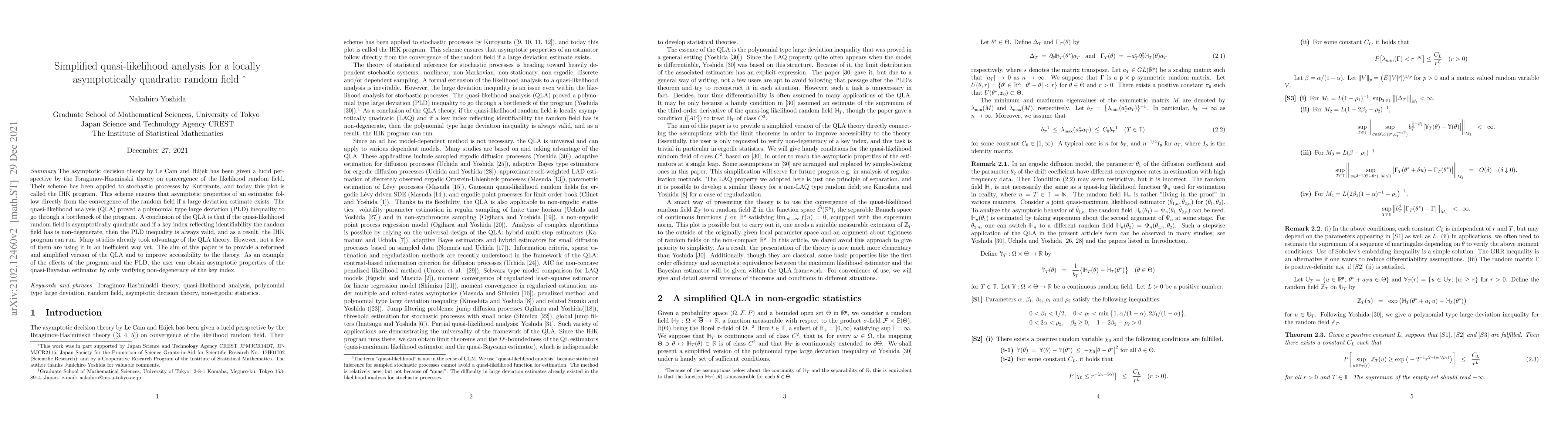 The asymptotic decision theory by Le Cam and Hajek has been given a lucid perspective by the Ibragimov-Hasminskii theory on convergence of the likelihood random field. Their scheme has been applied to stochastic processes by Kutoyants, and today this plot is called the IHK program. This scheme ensures that asymptotic properties of an estimator follow directly from the convergence of the random field if a large deviation estimate exists. The quasi-likelihood analysis (QLA) proved a polynomial type large deviation (PLD) inequality to go through a bottleneck of the program. A conclusion of the QLA is that if the quasi-likelihood random field is asymptotically quadratic and if a key index reflecting identifiability the random field has is non-degenerate, then the PLD inequality is always valid, and as a result, the IHK program can run. Many studies already took advantage of the QLA theory. However, not a few of them are using it in an inefficient way yet. The aim of this paper is to provide a reformed and simplified version of the QLA and to improve accessibility to the theory. As an example of the effects of the theory based on the PLD, the user can obtain asymptotic properties of the quasi-Bayesian estimator by only verifying non-degeneracy of the key index.
