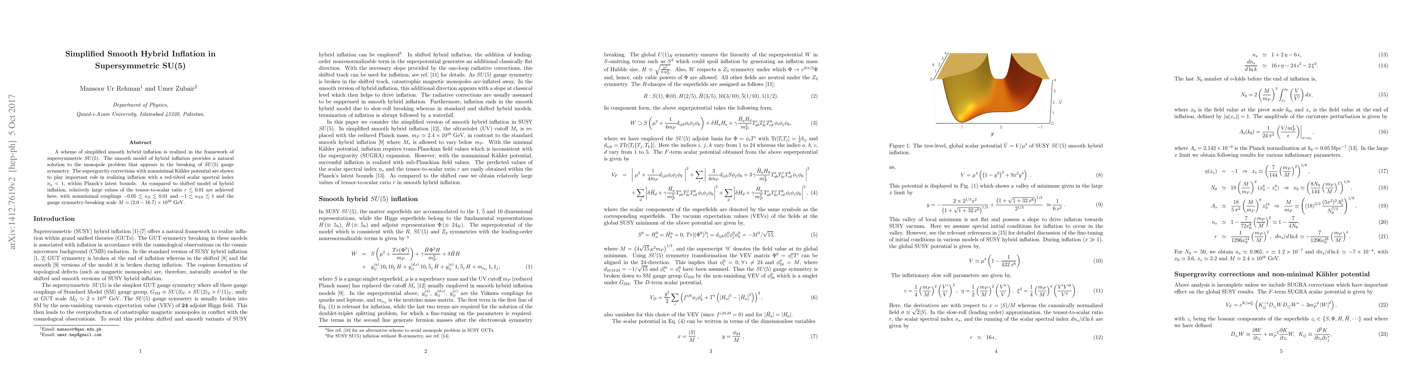 This paper proposes a simplified smooth hybrid inflation model within supersymmetric $SU(5)$ that resolves the monopole problem and achieves a red-tilted scalar spectral index $n_s < 1$ under Planck constraints, with a tensor-to-scalar ratio $r \lesssim 0.01$ and specific nonminimal couplings.