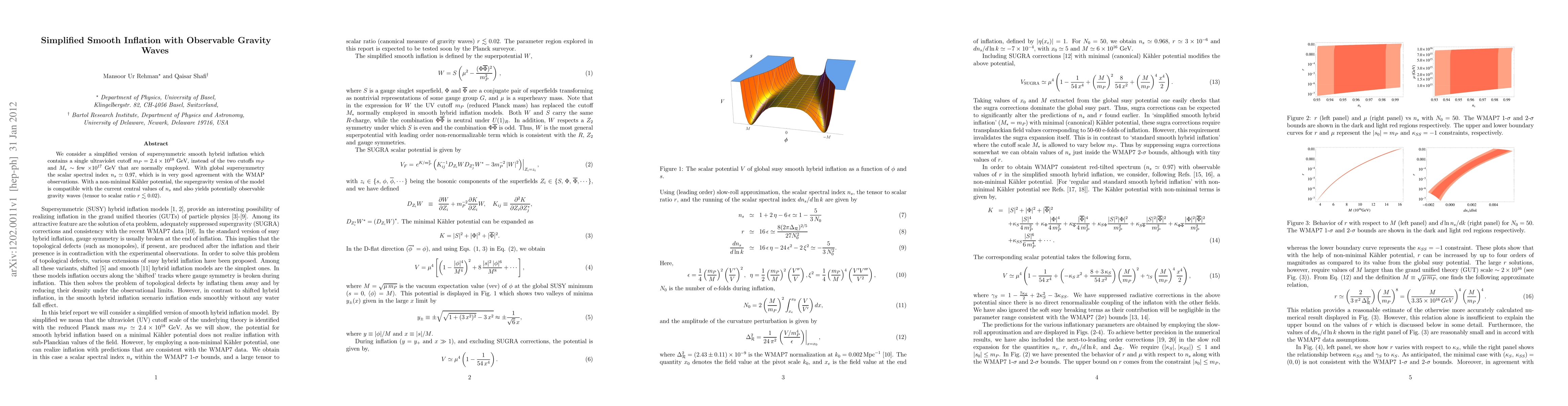 This paper proposes a simplified supersymmetric smooth hybrid inflation model with a single ultraviolet cutoff, achieving a scalar spectral index n_s ~ 0.97 that aligns well with WMAP observations. The supergravity version with a non-minimal Kahler potential also predicts potentially observable gravity waves with a tensor to scalar ratio r <~ 0.02.