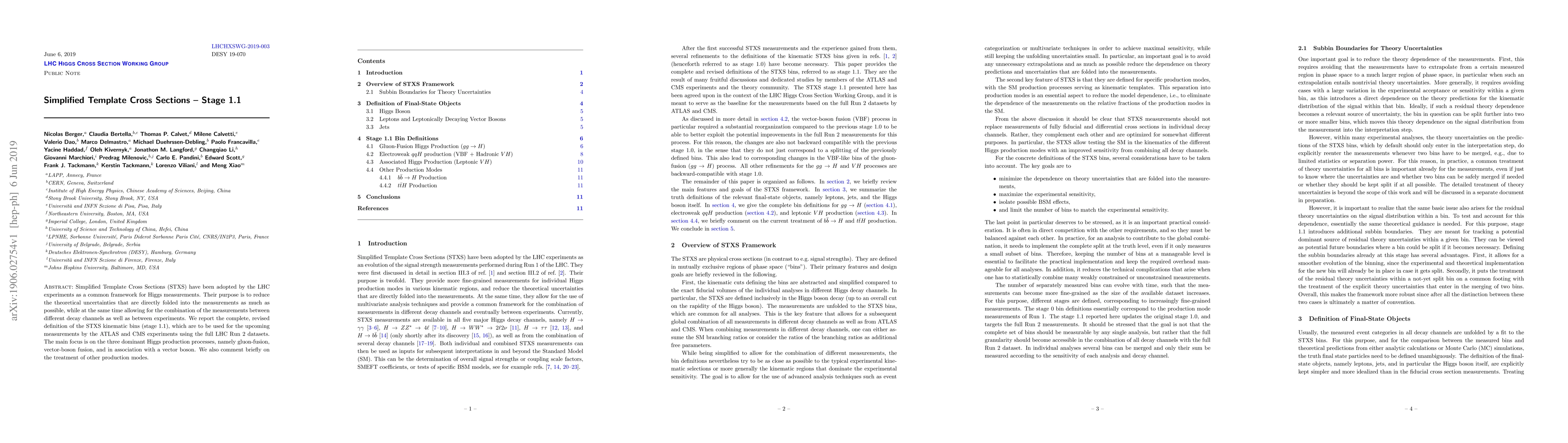 Simplified Template Cross Sections (STXS) have been adopted by the LHC experiments as a common framework for Higgs measurements. Their purpose is to reduce the theoretical uncertainties that are directly folded into the measurements as much as possible, while at the same time allowing for the combination of the measurements between different decay channels as well as between experiments. We report the complete, revised definition of the STXS kinematic bins (stage 1.1), which are to be used for the upcoming measurements by the ATLAS and CMS experiments using the full LHC Run 2 datasets. The main focus is on the three dominant Higgs production processes, namely gluon-fusion, vector-boson fusion, and in association with a vector boson. We also comment briefly on the treatment of other production modes.