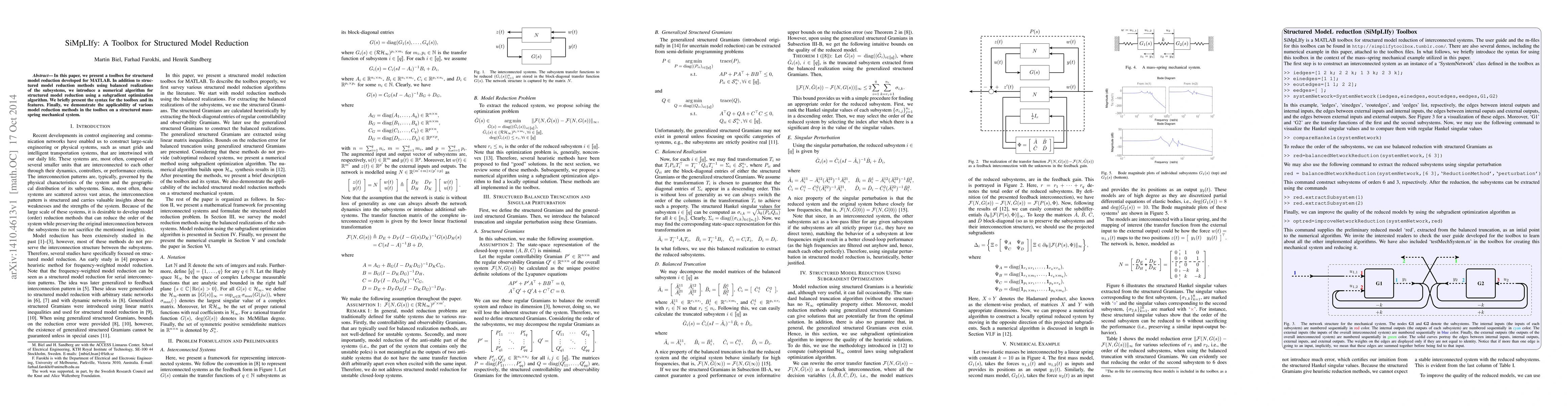 SiMpLIfy is a MATLAB toolbox designed for structured model reduction, incorporating balanced subsystem realizations and a subgradient optimization algorithm. The paper demonstrates its effectiveness through a mechanical system example.