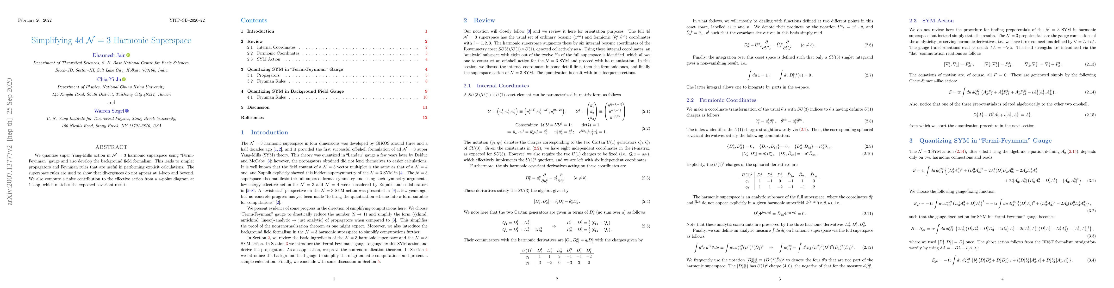 This paper quantizes the super Yang-Mills action in $\mathcal{N}=3$ harmonic superspace using a "Fermi-Feynman" gauge and background field formalism, leading to simpler propagators and Feynman rules. It demonstrates that no divergences arise at 1-loop and beyond, and computes a finite 1-loop contribution to the effective action.