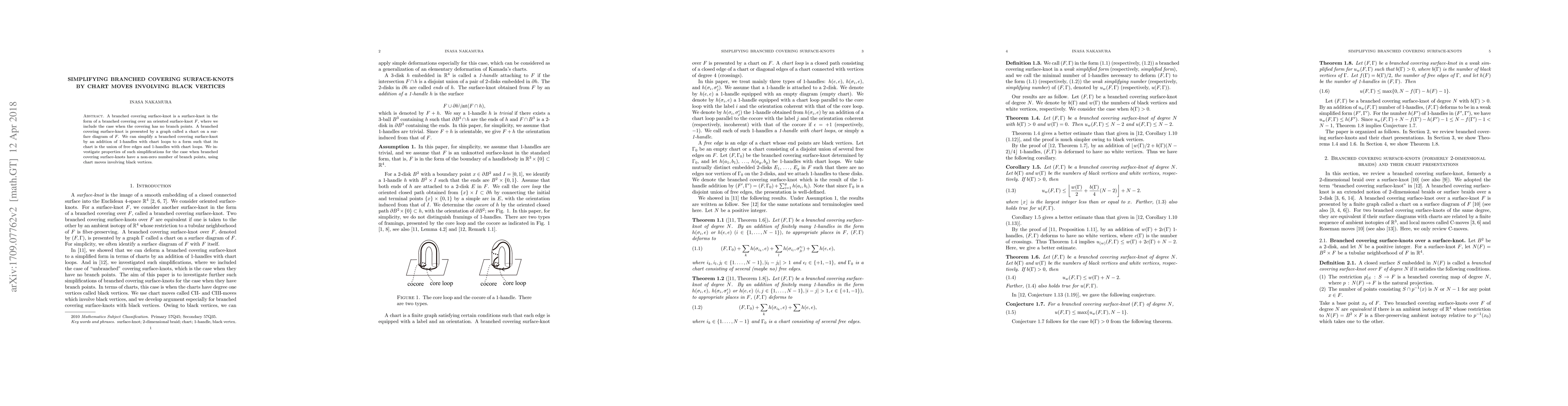 Researchers simplify branched covering surface-knots using chart moves involving black vertices, aiming to convert them into simpler forms with free edges and 1-handles.