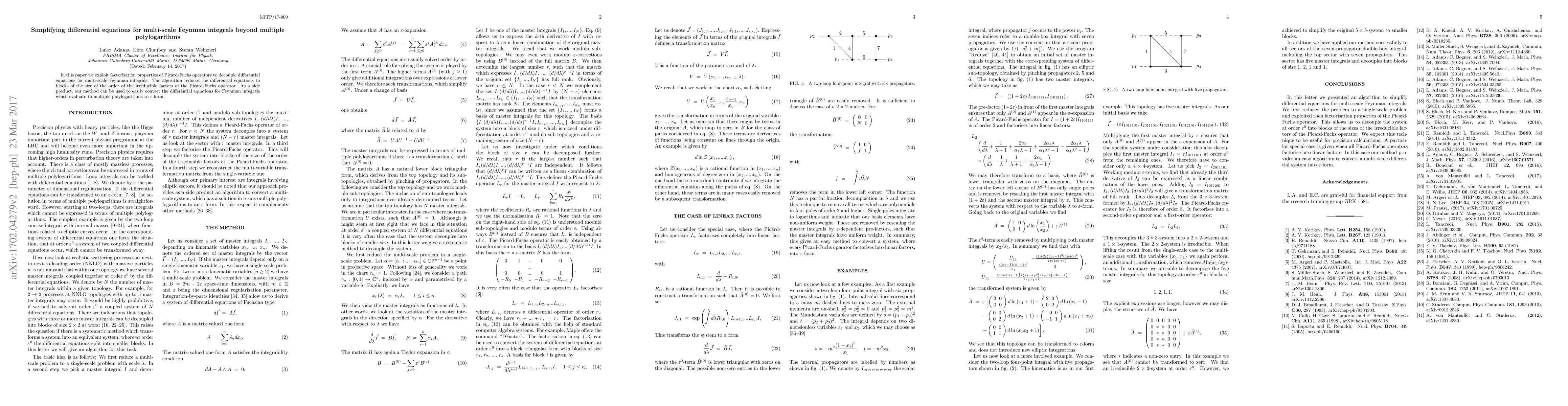 The research methodology used a combination of mathematical techniques and computational methods to simplify differential equations for multi-scale Feynman integrals.