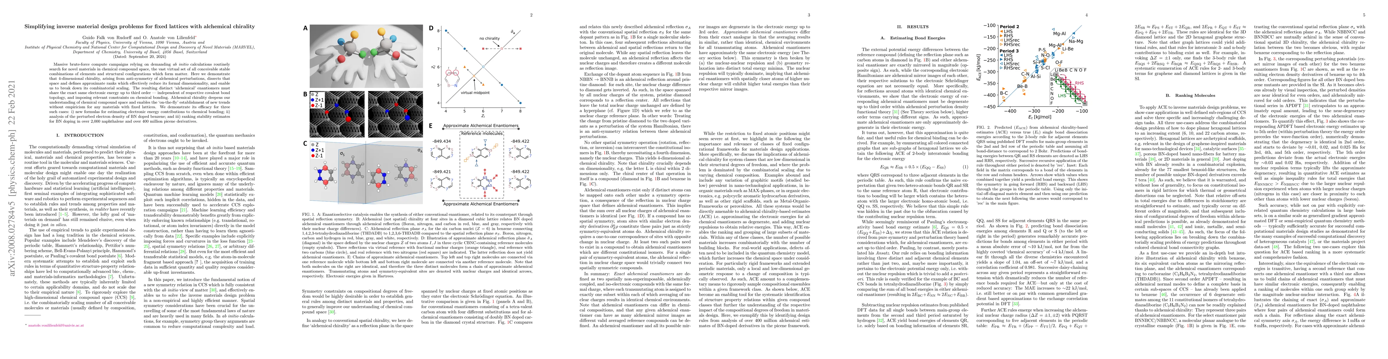 This paper proposes a method using 4-dimensional chirality from alchemical perturbations to simplify inverse material design problems for fixed lattices, effectively reducing the dimensionality of chemical compound space and enabling new trends to be established without empiricism. The method is demonstrated through applications in estimating electronic energy contributions, analyzing BN doped benzene, and ranking stability for BN doping in naphthalene and picene derivatives.