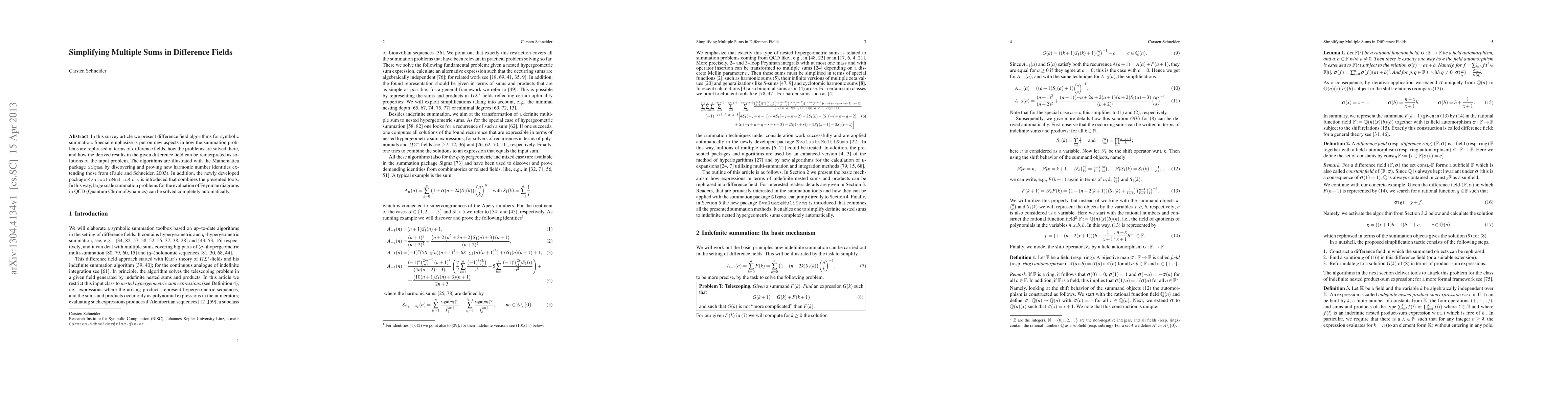 In this survey article we present difference field algorithms for symbolic summation. Special emphasize is put on new aspects in how the summation problems are rephrased in terms of difference fields, how the problems are solved there, and how the derived results in the given difference field can be reinterpreted as solutions of the input problem. The algorithms are illustrated with the Mathematica package \SigmaP\ by discovering and proving new harmonic number identities extending those from (Paule and Schneider, 2003). In addition, the newly developed package \texttt{EvaluateMultiSums} is introduced that combines the presented tools. In this way, large scale summation problems for the evaluation of Feynman diagrams in QCD (Quantum ChromoDynamics) can be solved completely automatically.