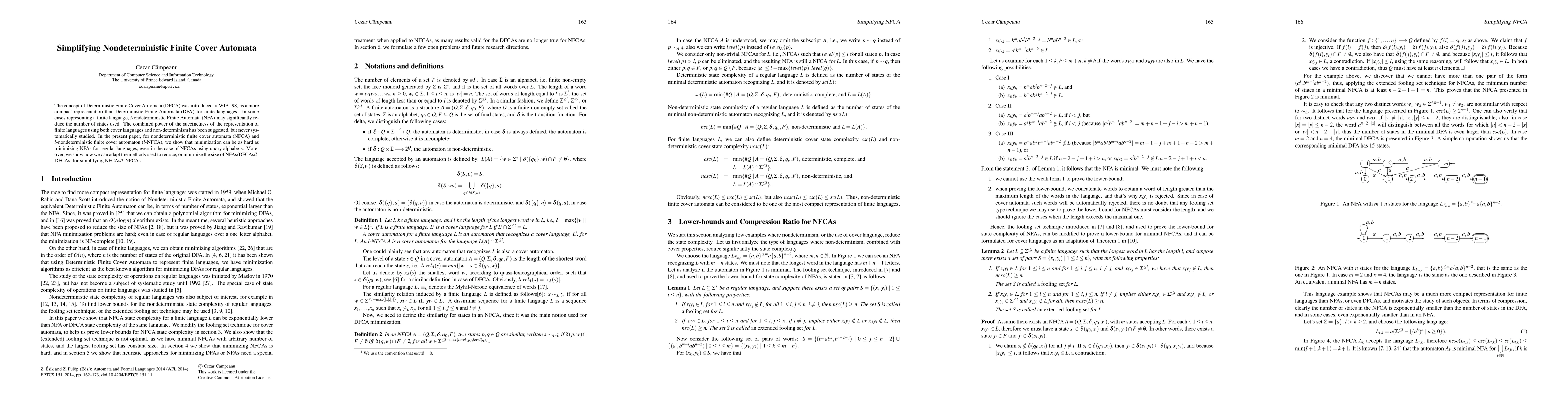 The concept of Deterministic Finite Cover Automata (DFCA) was introduced at WIA '98, as a more compact representation than Deterministic Finite Automata (DFA) for finite languages. In some cases representing a finite language, Nondeterministic Finite Automata (NFA) may significantly reduce the number of states used. The combined power of the succinctness of the representation of finite languages using both cover languages and non-determinism has been suggested, but never systematically studied. In the present paper, for nondeterministic finite cover automata (NFCA) and l-nondeterministic finite cover automaton (l-NFCA), we show that minimization can be as hard as minimizing NFAs for regular languages, even in the case of NFCAs using unary alphabets. Moreover, we show how we can adapt the methods used to reduce, or minimize the size of NFAs/DFCAs/l-DFCAs, for simplifying NFCAs/l-NFCAs.