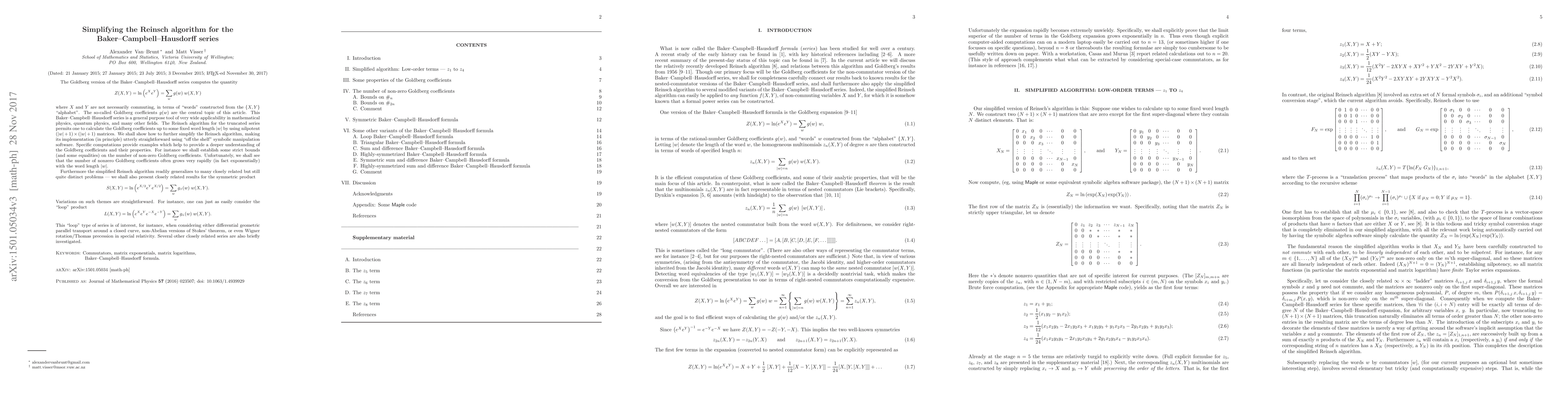 This paper simplifies the Reinsch algorithm for computing the Baker-Campbell-Hausdorff series, offering a straightforward implementation and deeper insights into Goldberg coefficients. It also explores related series like the symmetric product and their applications in mathematical physics, noting the rapid growth of terms in these series.
