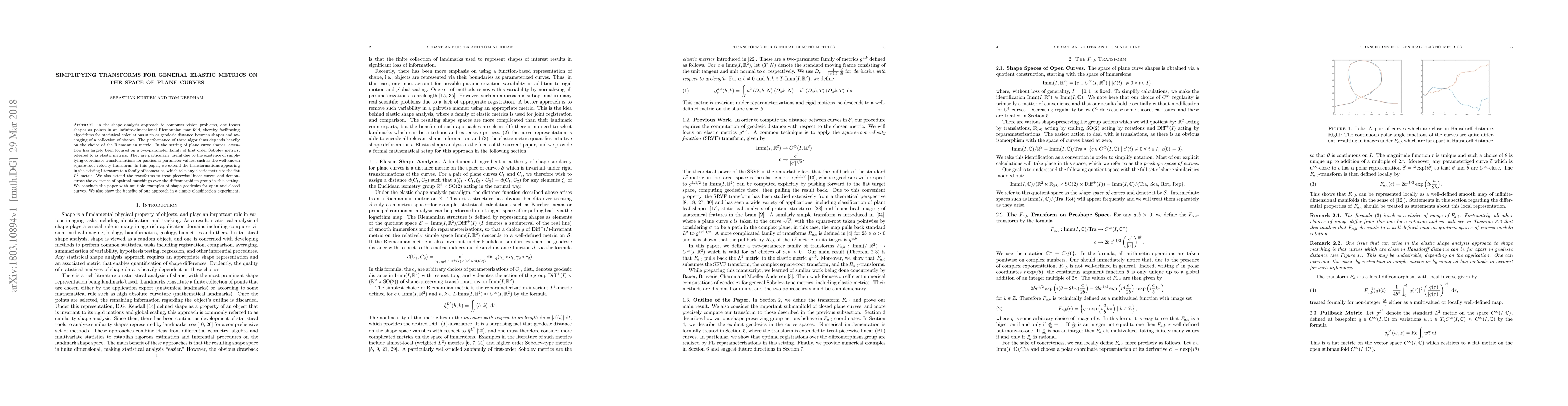 This paper extends simplifying coordinate transformations for elastic metrics in shape analysis of plane curves, enabling any elastic metric to be transformed into a flat L^2 metric. The method also covers piecewise linear curves and demonstrates optimal matchings over the diffeomorphism group. The research provides examples of shape geodesics and a simple classification experiment showing the approach's benefits.