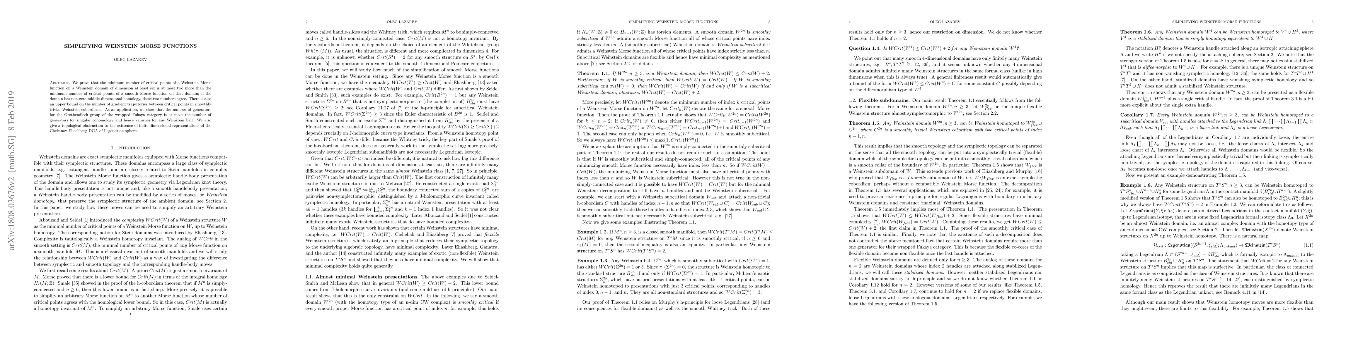 This research simplifies Weinstein Morse functions, offering insights into the structure of Weinstein domains and their relationship with smooth Morse functions, which is crucial for understanding symplectic topology and Fukaya categories.