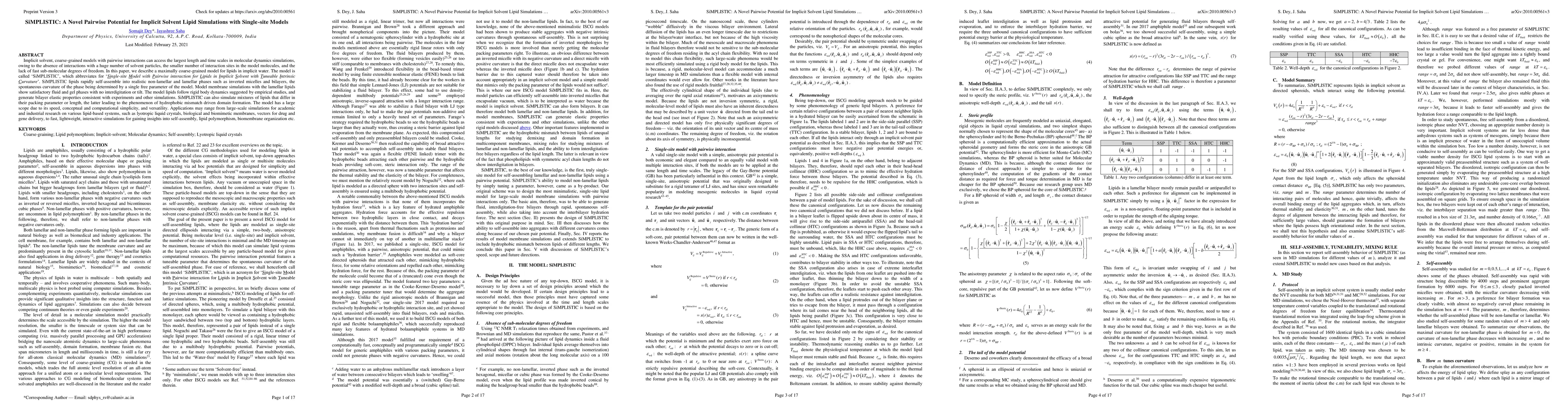 SiMPLISTIC is a novel coarse-grained model for lipid simulations in implicit solvent, enabling large-scale molecular dynamics by reducing computational complexity. It accurately reproduces lipid phase behavior and bilayer properties, and can simulate lipid mixtures and domain formation due to hydrophobic mismatch.