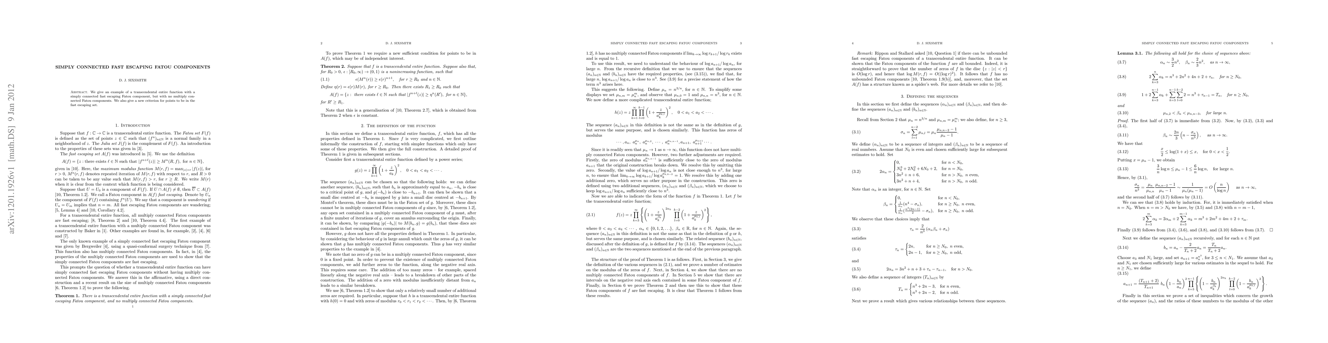 We give an example of a transcendental entire function with a simply connected fast escaping Fatou component, but with no multiply connected Fatou components. We also give a new criterion for points to be in the fast escaping set.