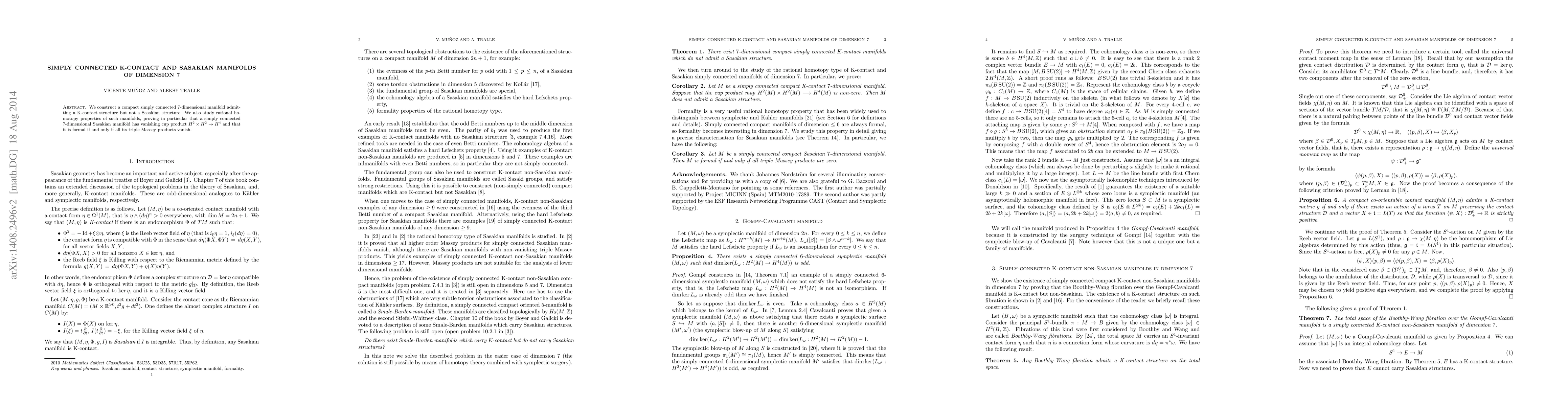 This paper constructs a compact, simply-connected 7-dimensional K-contact manifold without a Sasakian structure. It also investigates the rational homotopy properties, showing that a simply-connected 7-dimensional Sasakian manifold has a vanishing cup-product on the second cohomology and is formal only if all its triple Massey products vanish.