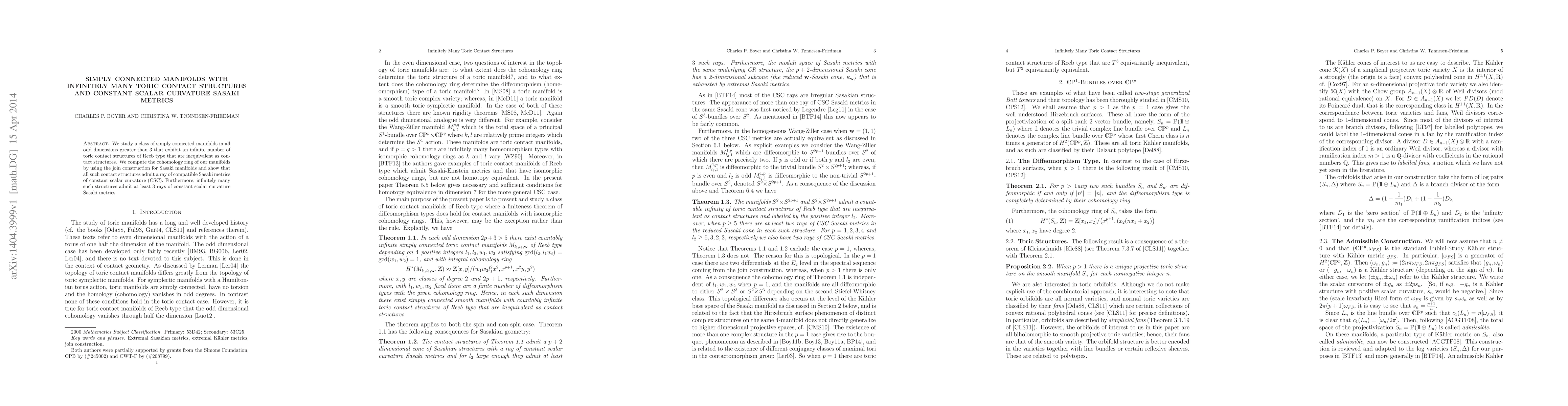 This paper investigates simply connected manifolds in odd dimensions greater than 3 with infinite inequivalent toric contact structures, revealing that these structures allow for a ray of Sasaki metrics with constant scalar curvature (CSC). Additionally, it demonstrates that infinitely many of these structures support at least three rays of such CSC Sasaki metrics.