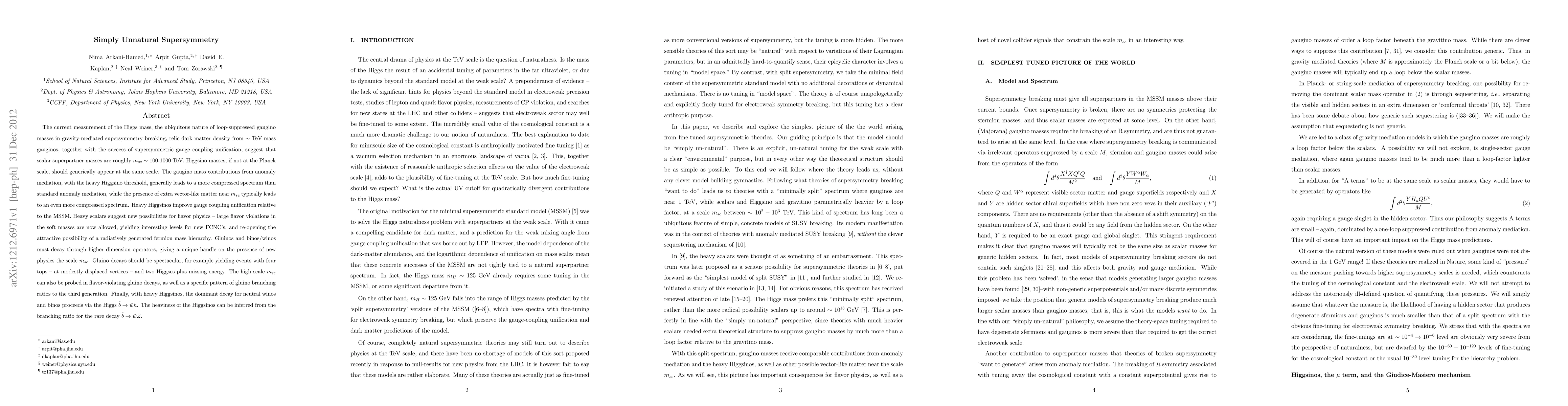 The current measurement of the Higgs mass, the ubiquitous nature of loop-suppressed gaugino masses in gravity-mediated supersymmetry breaking, relic dark matter density from $\sim$ TeV mass gauginos, together with the success of supersymmetric gauge coupling unification, suggest that scalar superpartner masses are roughly $m_{sc} \sim$ 100-1000 TeV. Higgsino masses, if not at the Planck scale, should generically appear at the same scale. The gaugino mass contributions from anomaly mediation, with the heavy Higgsino threshold, generally leads to a more compressed spectrum than standard anomaly mediation, while the presence of extra vector-like matter near $m_{sc}$ typically leads to an even more compressed spectrum. Heavy Higgsinos improve gauge coupling unification relative to the MSSM. Heavy scalars suggest new possibilities for flavor physics -- large flavor violations in the soft masses are now allowed, yielding interesting levels for new FCNC's, and re-opening the attractive possibility of a radiatively generated fermion mass hierarchy. Gluinos and binos/winos must decay through higher dimension operators, giving a unique handle on the presence of new physics the scale $m_{sc}$. Gluino decays should be spectacular, for example yielding events with four tops -- at modestly displaced vertices -- and two Higgses plus missing energy. The high scale $m_{sc}$ can also be probed in flavor-violating gluino decays, as well as a specific pattern of gluino branching ratios to the third generation. Finally, with heavy Higgsinos, the dominant decay for neutral winos and binos proceeds via the Higgs $\tilde b \to \tilde w h$. The heaviness of the Higgsinos can be inferred from the branching ratio for the rare decay $\tilde b \to \tilde w Z$.