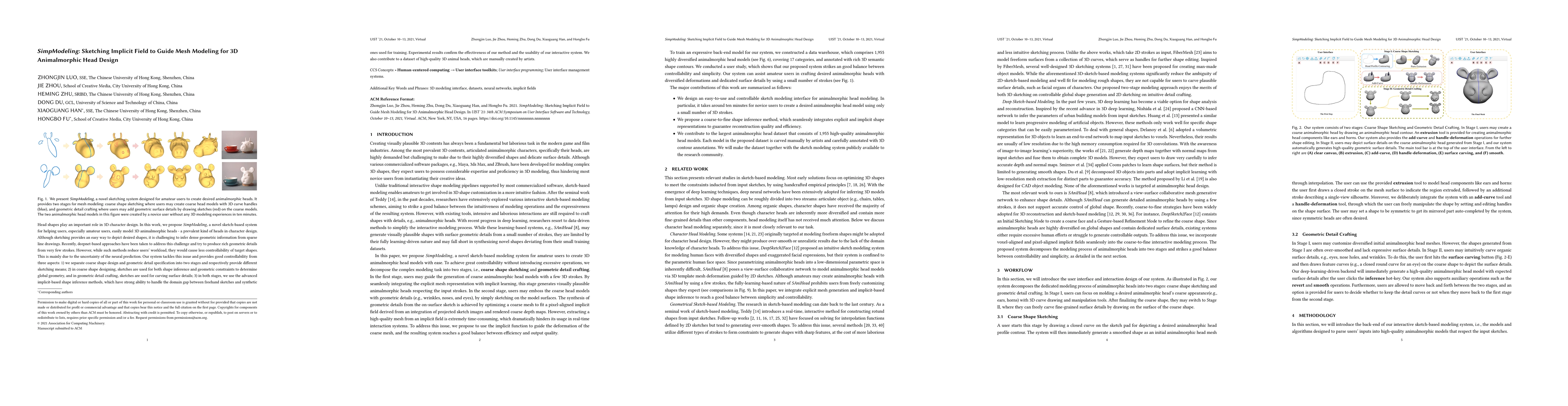 SimpModeling proposes a novel sketch-based system to help amateur users model 3D animalmorphic heads with good controllability and rich geometric details.