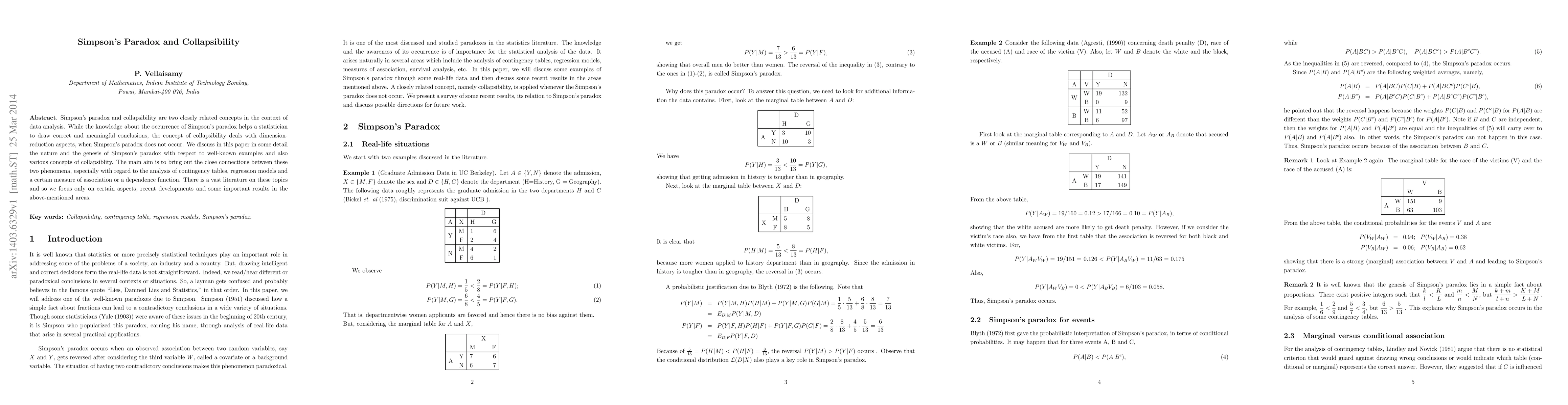 This paper explores the intricate relationship between Simpson's paradox and collapsibility in data analysis, emphasizing their relevance in interpreting contingency tables and regression models. It highlights the importance of understanding these concepts for accurate statistical conclusions and discusses recent developments in their applications.