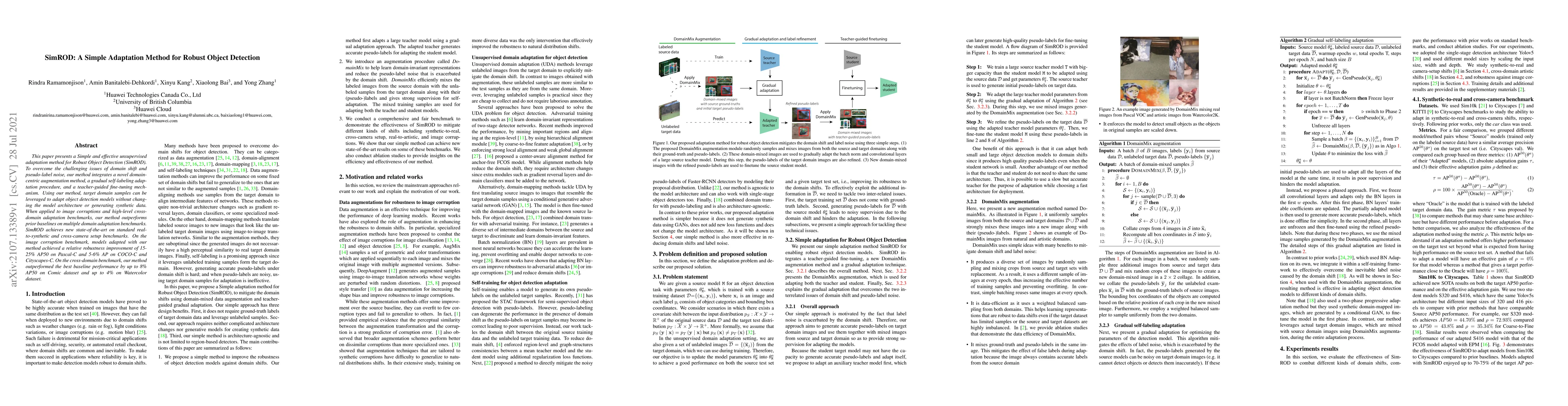 SimROD introduces an unsupervised adaptation method for robust object detection, overcoming domain shift and pseudo-label noise through domain-centric augmentation, gradual self-labeling, and teacher-guided fine-tuning. It achieves state-of-the-art results on various benchmarks, showing significant improvements in robustness and cross-domain adaptation.