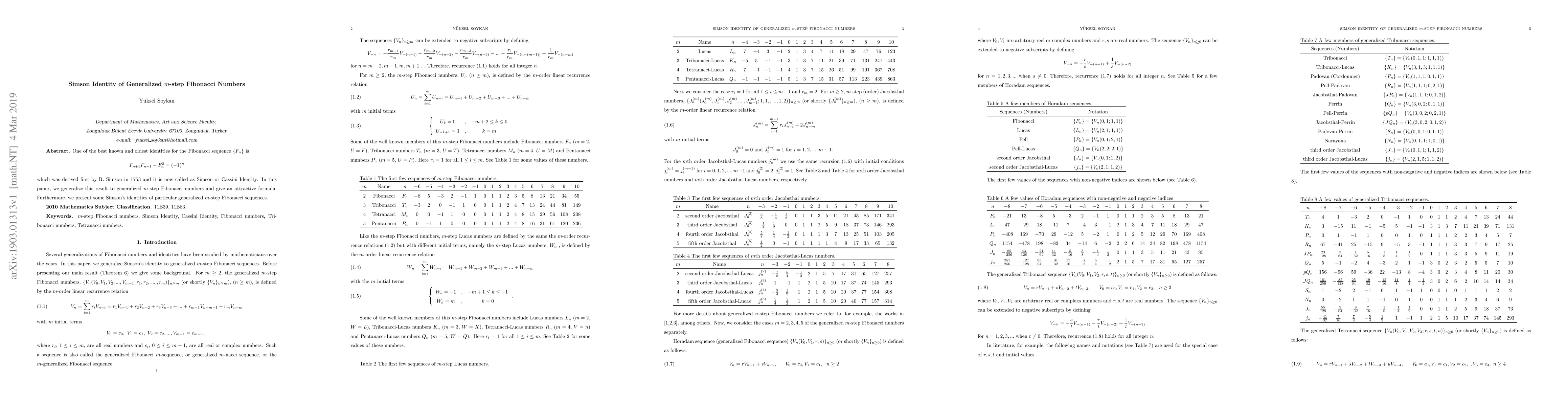 This paper generalizes the classical Simson Identity for Fibonacci numbers to generalized m-step Fibonacci sequences, providing a new formula and exploring specific instances of these identities. The study extends the well-known relationship $F_{n+1}F_{n-1}-F_{n}^2=(-1)^n$ to broader sequences.