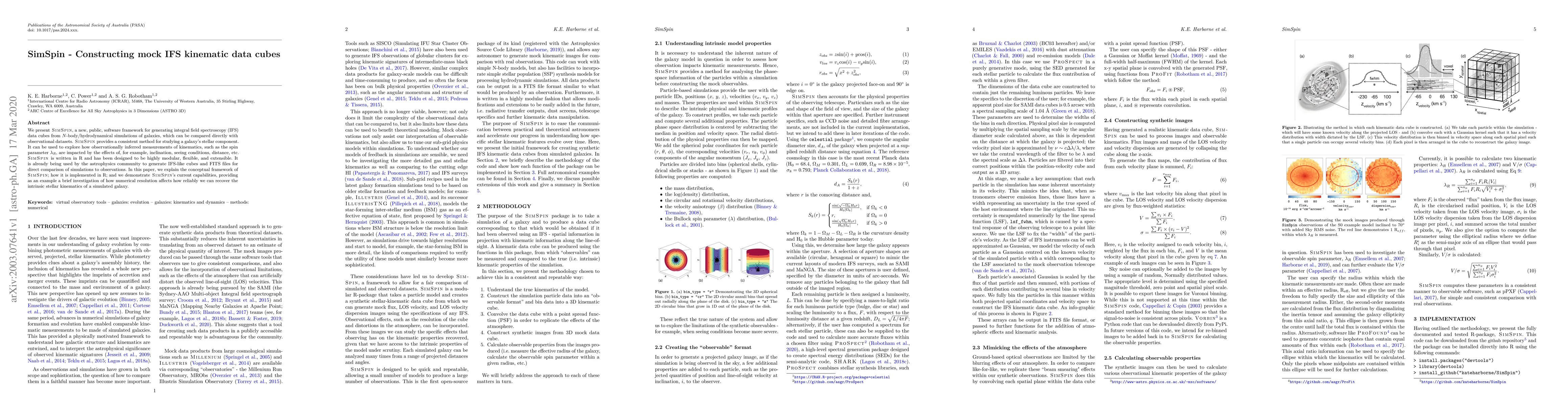 SimSpin is a new, open-source software framework in R for creating integral field spectroscopy (IFS) data cubes from galaxy simulations. It helps researchers compare simulations with observations, analyze stellar kinematics, and understand the impact of factors like inclination, seeing, and distance on measurements like the spin parameter λ_R. The paper explains SimSpin's design, implementation, and demonstrates its use in studying numerical resolution's effect on recovering a simulated galaxy's intrinsic stellar kinematics.