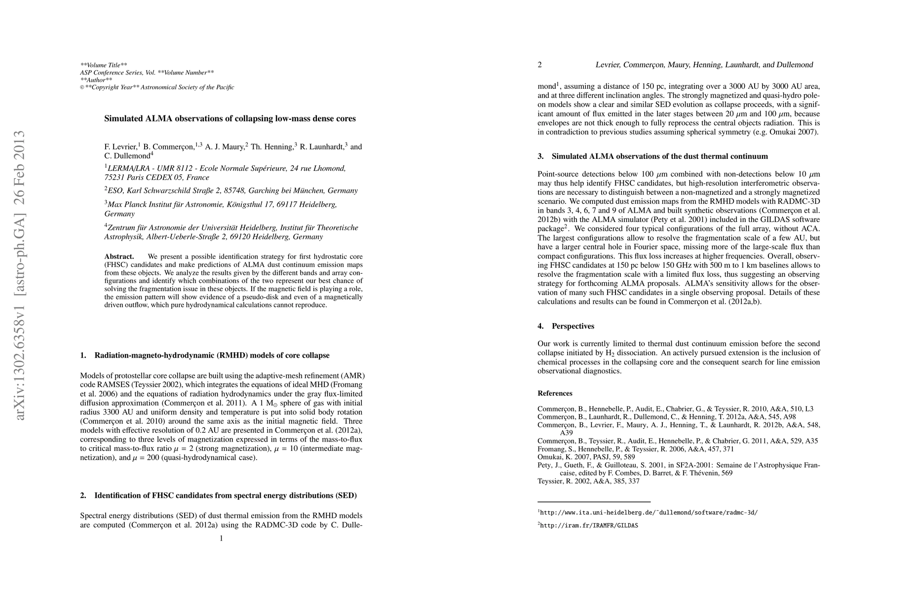 We present a possible identification strategy for first hydrostatic core (FHSC) candidates and make predictions of ALMA dust continuum emission maps from these objects. We analyze the results given by the different bands and array configurations and identify which combinations of the two represent our best chance of solving the fragmentation issue in these objects. If the magnetic field is playing a role, the emission pattern will show evidence of a pseudo-disk and even of a magnetically driven outflow, which pure hydrodynamical calculations cannot reproduce.