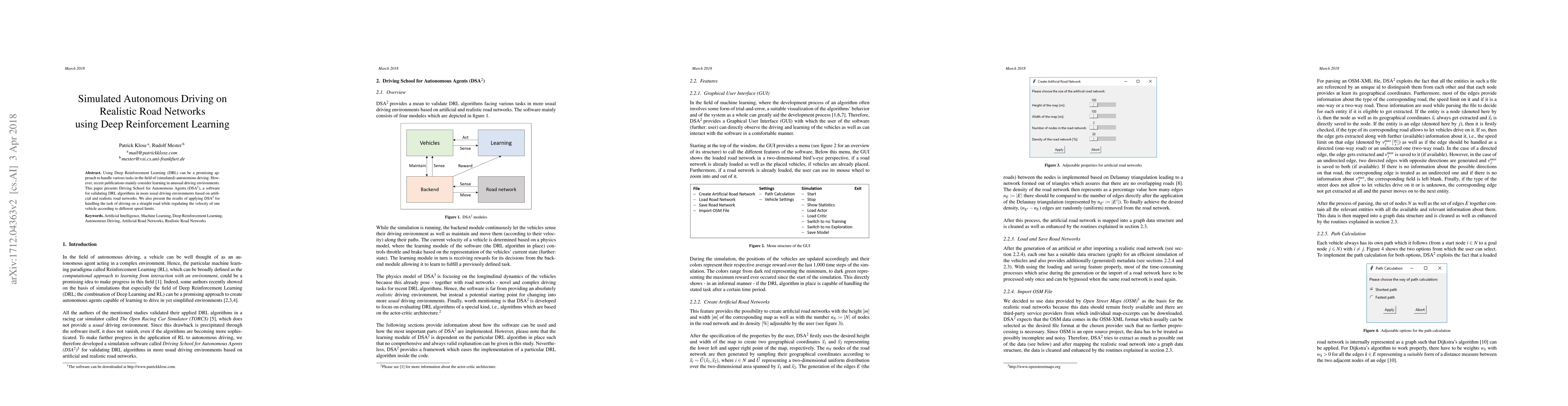 Using Deep Reinforcement Learning (DRL) can be a promising approach to handle various tasks in the field of (simulated) autonomous driving. However, recent publications mainly consider learning in unusual driving environments. This paper presents Driving School for Autonomous Agents (DSA^2), a software for validating DRL algorithms in more usual driving environments based on artificial and realistic road networks. We also present the results of applying DSA^2 for handling the task of driving on a straight road while regulating the velocity of one vehicle according to different speed limits.