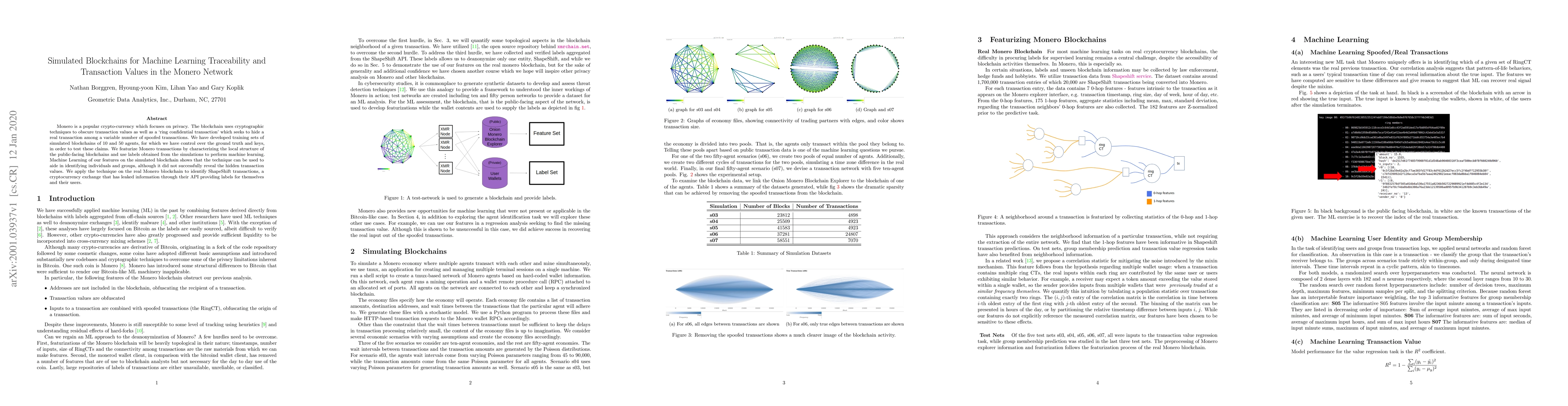 This research paper presents simulated Monero blockchain models with 10 and 50 agents to test privacy claims. Machine learning on transaction features from these sims and real Monero blocks helped identify individuals and groups, but not hidden transaction values. The method successfully pinpointed ShapeShift transactions via leaked API data, highlighting potential privacy vulnerabilities in Monero.