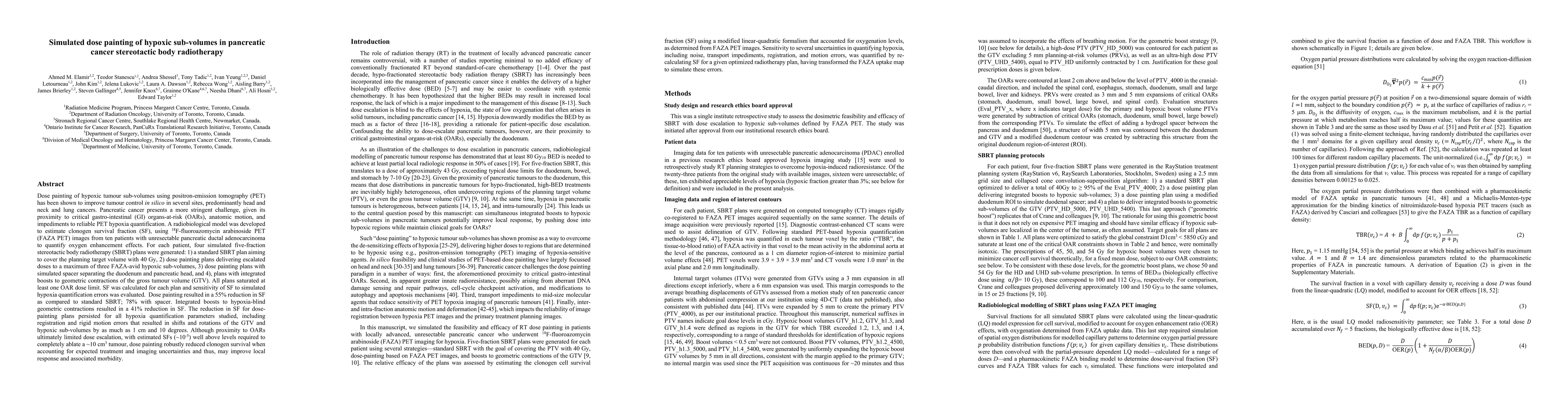 Dose painting of hypoxic sub-volumes in pancreatic cancer stereotactic body radiotherapy improved tumour control by 55% compared to standard treatment, with significant reductions also seen when accounting for image uncertainties.