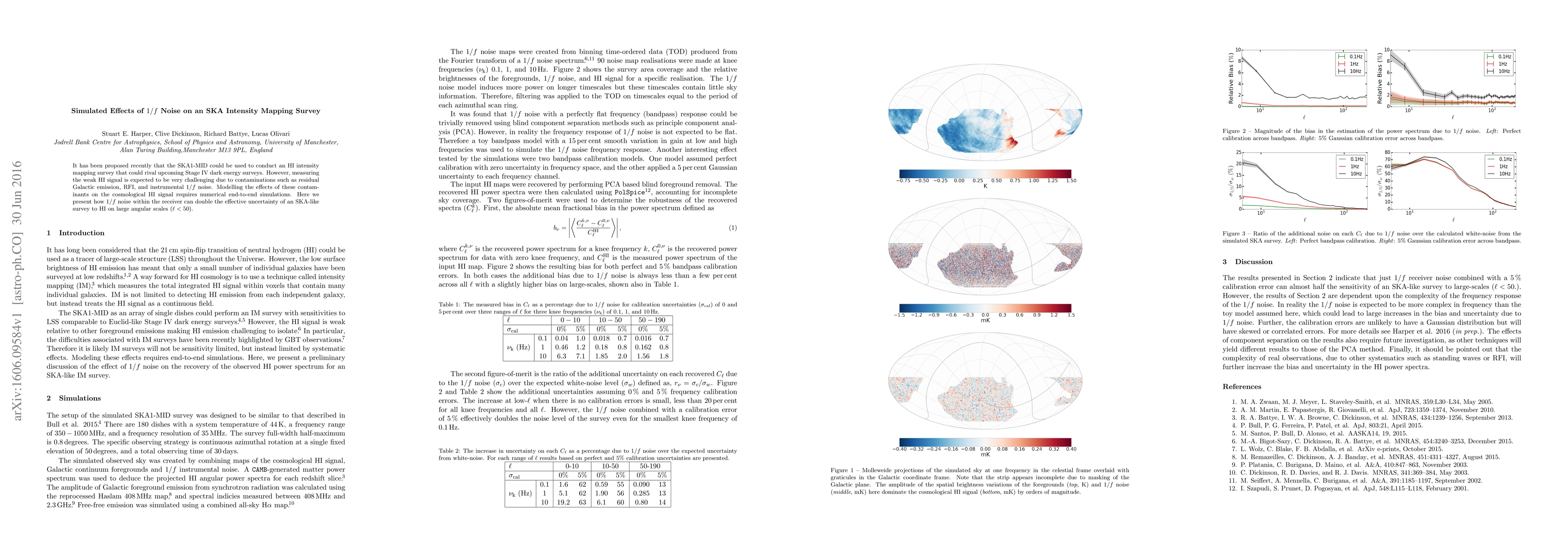 Simulated 1/f noise in SKA surveys doubles uncertainty for HI intensity mapping on large scales, threatening rival dark energy surveys.