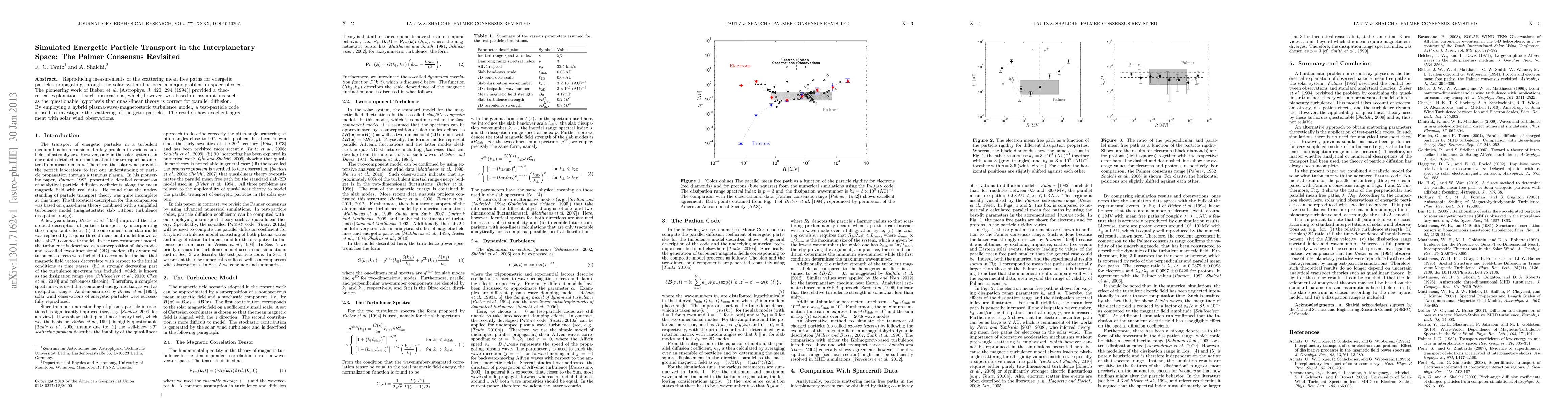 Reproducing measurements of the scattering mean free paths for energetic particles propagating through the solar system has been a major problem in space physics. The pioneering work of Bieber et al. [Astrophys. J. 420, 294 (1994)] provided a theoretical explanation of such observations, which, however, was based on assumptions such as the questionable hypothesis that quasi-linear theory is correct for parallel diffusion. By employing a hybrid plasma-wave/magnetostatic turbulence model, a test-particle code is used to investigate the scattering of energetic particles. The results show excellent agreement with solar wind observations.