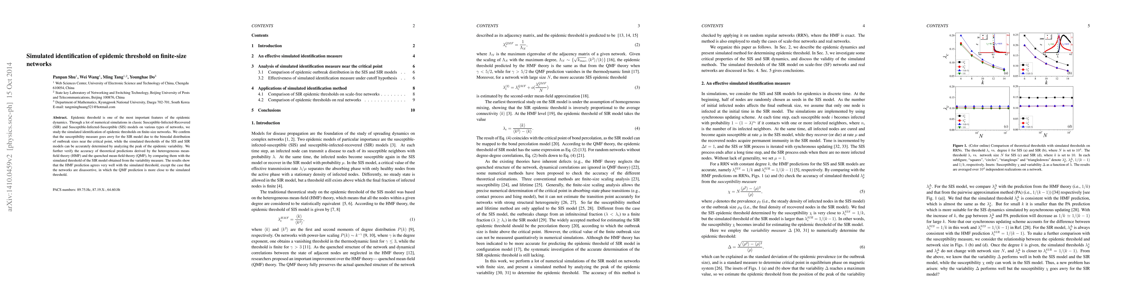 This paper investigates the identification of epidemic thresholds in SIR and SIS models on finite-size networks through numerical simulations. The study finds that the susceptibility measure fails for the SIR model due to bimodal outbreak sizes near the critical point, while thresholds can be accurately determined by analyzing epidemic variability peaks. Theoretical predictions from HMF and QMF theories are validated against simulated SIR thresholds, showing HMF's accuracy except in disassortive networks where QMF aligns better.