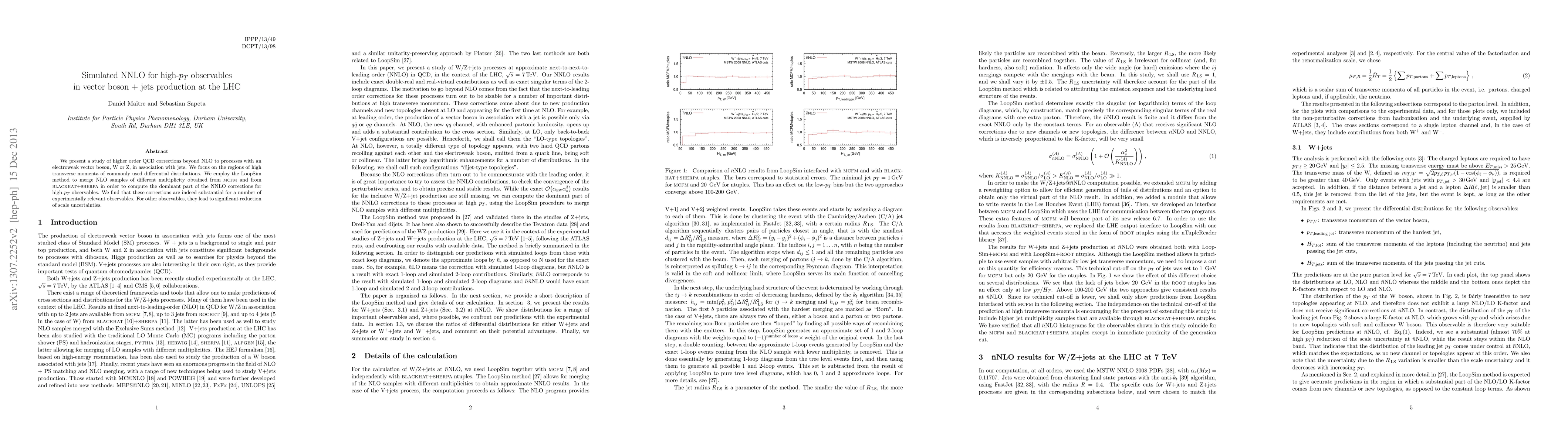 We present a study of higher order QCD corrections beyond NLO to processes with an electroweak vector boson, W or Z, in association with jets. We focus on the regions of high transverse momenta of commonly used differential distributions. We employ the LoopSim method to merge NLO samples of different multiplicity obtained from MCFM and from BLACKHAT+SHERPA in order to compute the dominant part of the NNLO corrections for high-pT observables. We find that these corrections are indeed substantial for a number of experimentally relevant observables. For other observables, they lead to significant reduction of scale uncertainties.