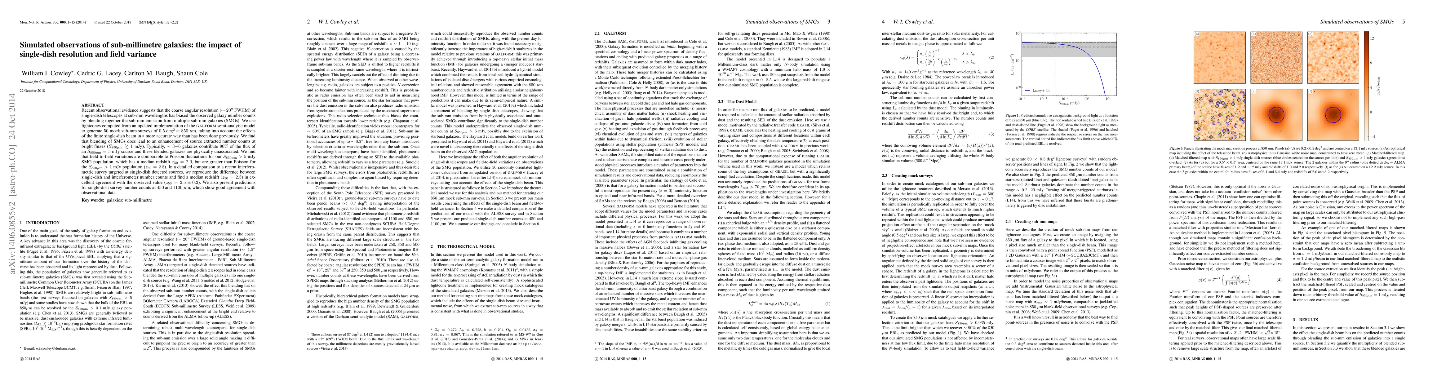 Recent observational evidence suggests that the coarse angular resolution ($\sim20"$ FWHM) of single-dish telescopes at sub-mm wavelengths has biased the observed galaxy number counts by blending together the sub-mm emission from multiple sub-mm galaxies (SMGs). We use lightcones computed from an updated implementation of the \galform semi-analytic model to generate $50$ mock sub-mm surveys of $0.5$ deg$^2$ at $850$ $\mu$m, taking into account the effects of the finite single-dish beam in a more accurate way than has been done previously. We find that blending of SMGs does lead to an enhancement of source extracted number counts at bright fluxes ($S_{\mathrm{850}\mu\mathrm{m}}\gtrsim1$ mJy). Typically, $\sim3{-}6$ galaxies contribute $90\%$ of the flux of an $S_{850\mu\mathrm{m}}=5$ mJy source and these blended galaxies are physically unassociated. We find that field-to-field variations are comparable to Poisson fluctuations for our $S_{850\mu\mathrm{m}}>5$ mJy SMG population, which has a median redshift $z_{50}=2.0$, but are greater than Poisson for the $S_{850\mu\mathrm{m}}>1$ mJy population ($z_{50}=2.8$). In a detailed comparison to a recent interferometric survey targeted at single-dish detected sources, we reproduce the difference between single-dish and interferometer number counts and find a median redshift ($z_{50}=2.5$) in excellent agreement with the observed value ($z_{50}=2.5\pm 0.2$). We also present predictions for single-dish survey number counts at $450$ and $1100$ $\mu$m, which show good agreement with observational data.