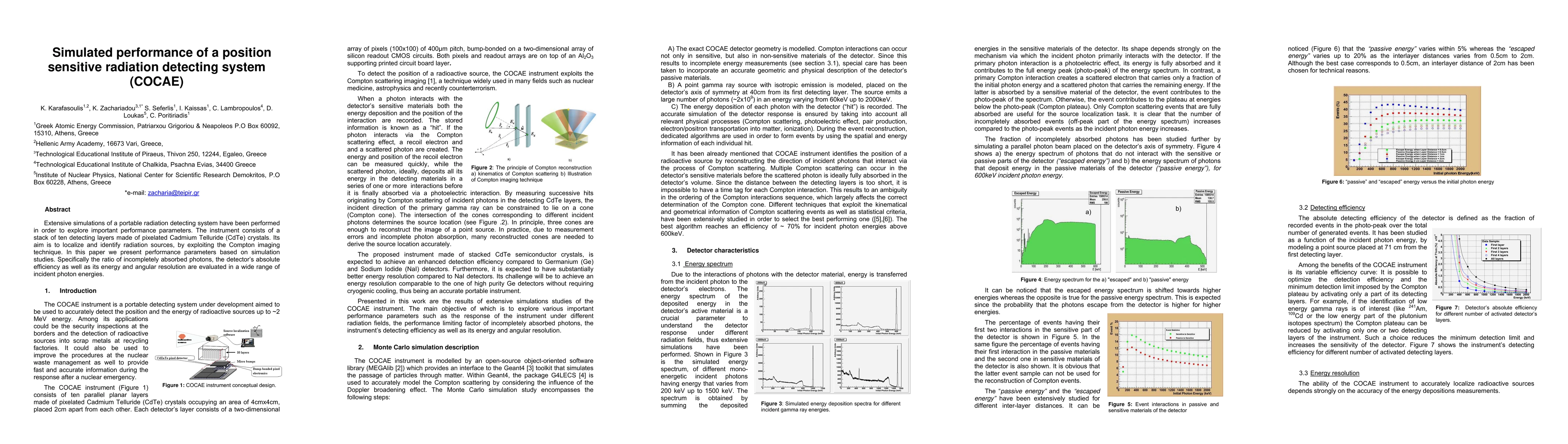 Extensive simulations of a portable radiation detecting system have been performed in order to explore important performance parameters. The instrument consists of a stack of ten detecting layers made of pixelated Cadmium Telluride (CdTe) crystals. Its aim is to localize and identify radiation sources, by exploiting the Compton imaging technique. In this paper we present performance parameters based on simulation studies. Specifically the ratio of incompletely absorbed photons, the detector's absolute efficiency as well as its energy and angular resolution are evaluated in a wide range of incident photon energies.