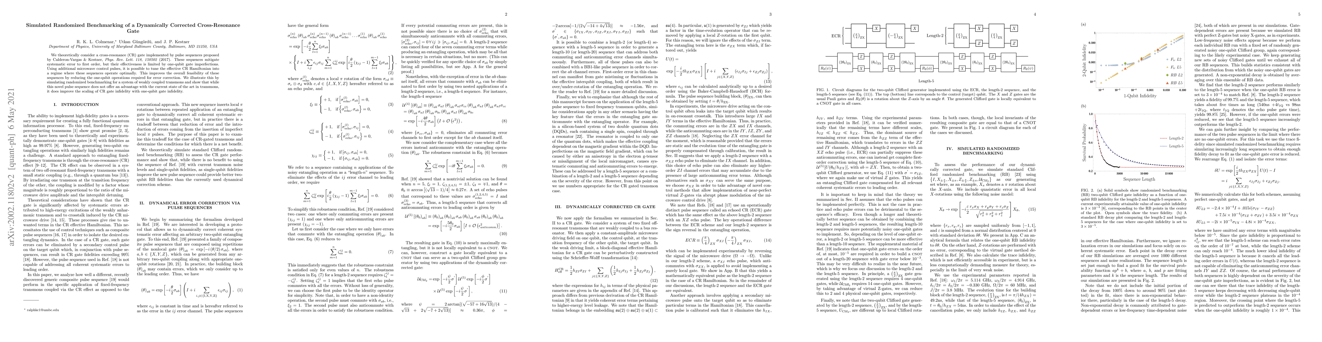 Researchers improved a cross-resonance gate by adding pulses to reduce one-qubit errors, increasing its feasibility and scalability. The new sequence showed no advantage over existing methods but offered better scaling with weakly coupled transmon systems.