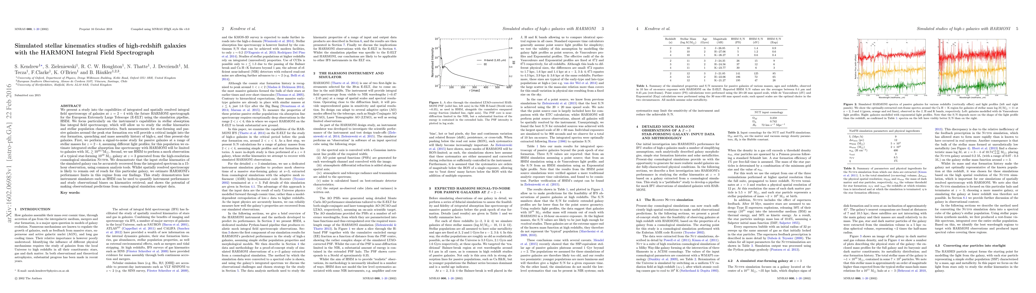 This study evaluates the future HARMONI spectrograph's capabilities for studying high-redshift galaxies' stellar kinematics using simulations, finding that it can accurately recover stellar kinematics for passive galaxies with M_star > 10^10.7 solar masses and demonstrate potential for integrated spectroscopy, though spatially resolved spectroscopy remains challenging.