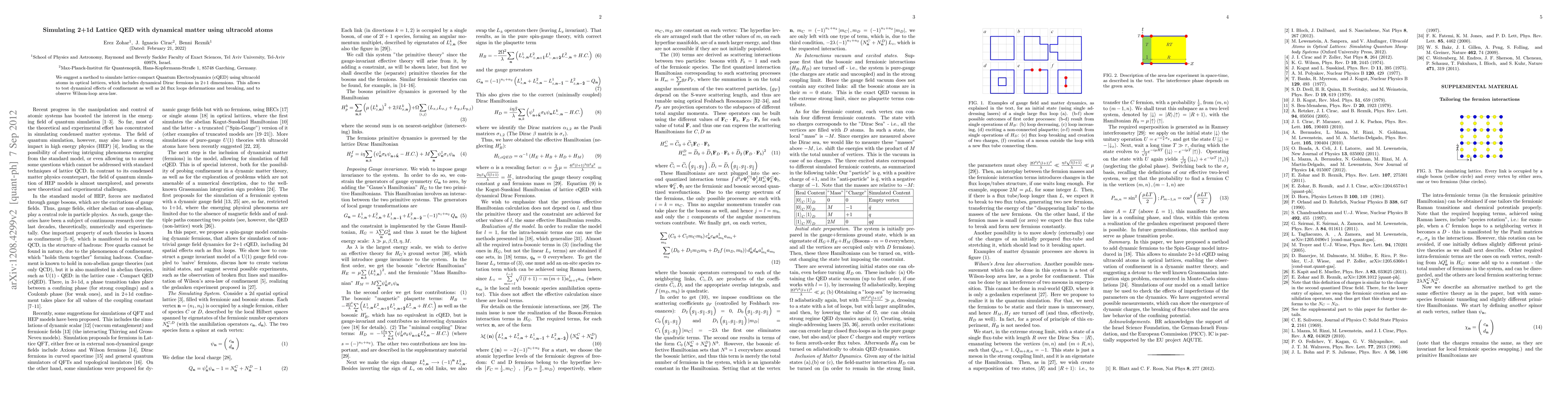 We suggest a method to simulate lattice compact Quantum Electrodynamics (cQED) using ultracold atoms in optical lattices, which includes dynamical Dirac fermions in 2+1 dimensions. This allows to test dynamical effects of confinement as well as 2d flux loops deformations and breaking, and to observe Wilson-loop area-law.