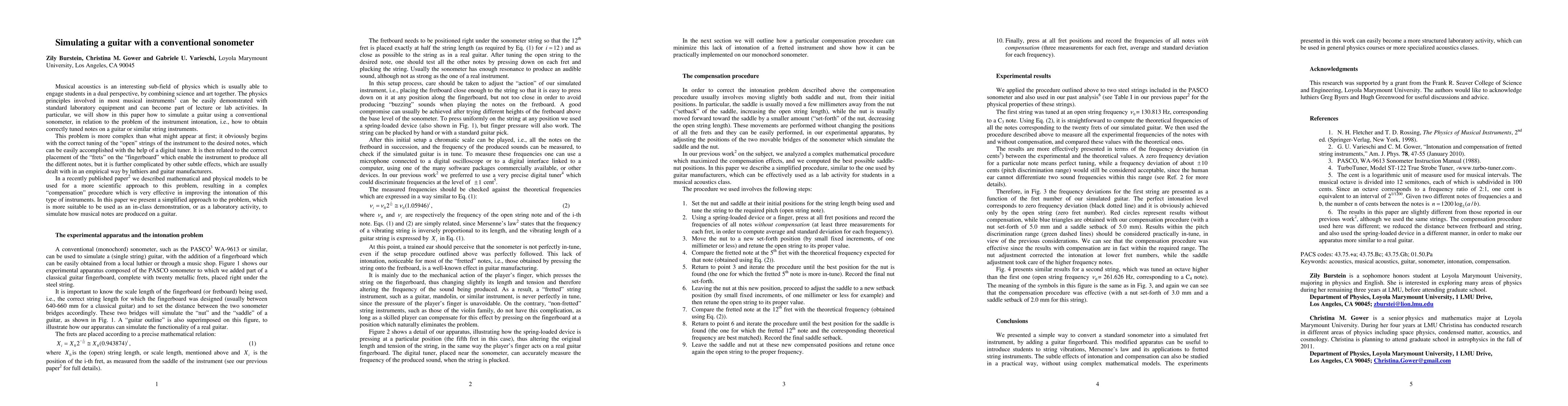 Researchers demonstrate how to simulate a guitar using a conventional sonometer, exploring its intonation issues and providing a new approach to tuning strings on string instruments.