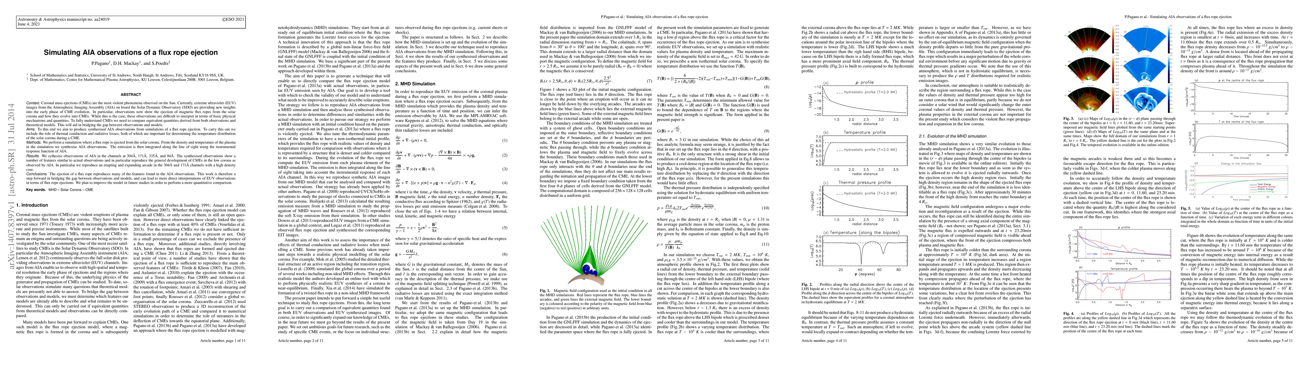 This paper simulates AIA observations of flux rope ejections from the solar corona, incorporating thermal conduction and radiative losses to model the temperature distribution. The synthesized observations match many features of actual AIA data, particularly in the 304 Å and 171 Å channels, aiding in understanding CME evolution and bridging observational and theoretical models.
