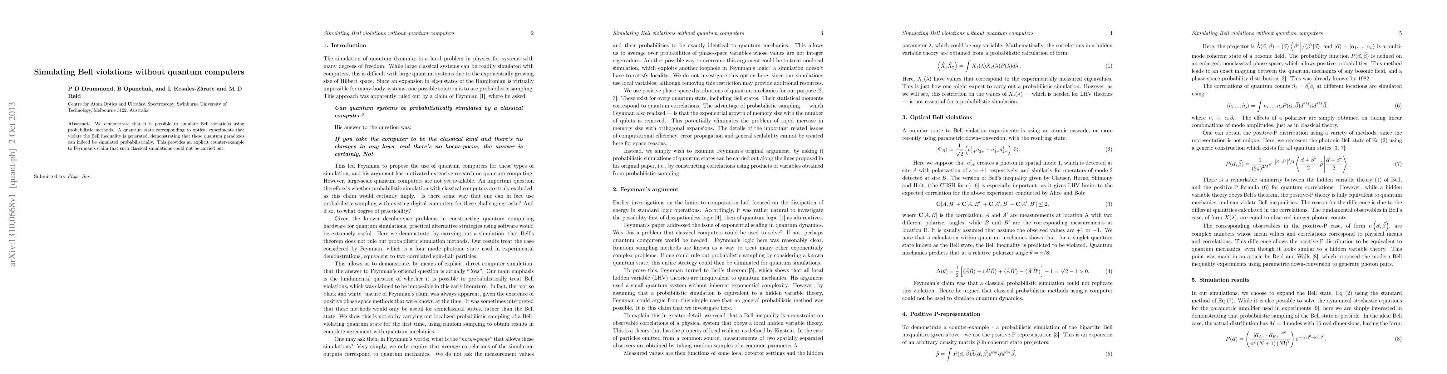 This paper shows that Bell violations can be simulated using probabilistic methods, generating a quantum state that mimics optical experiments violating the Bell inequality, thus disproving Feynman's assertion that such simulations are impossible classically.